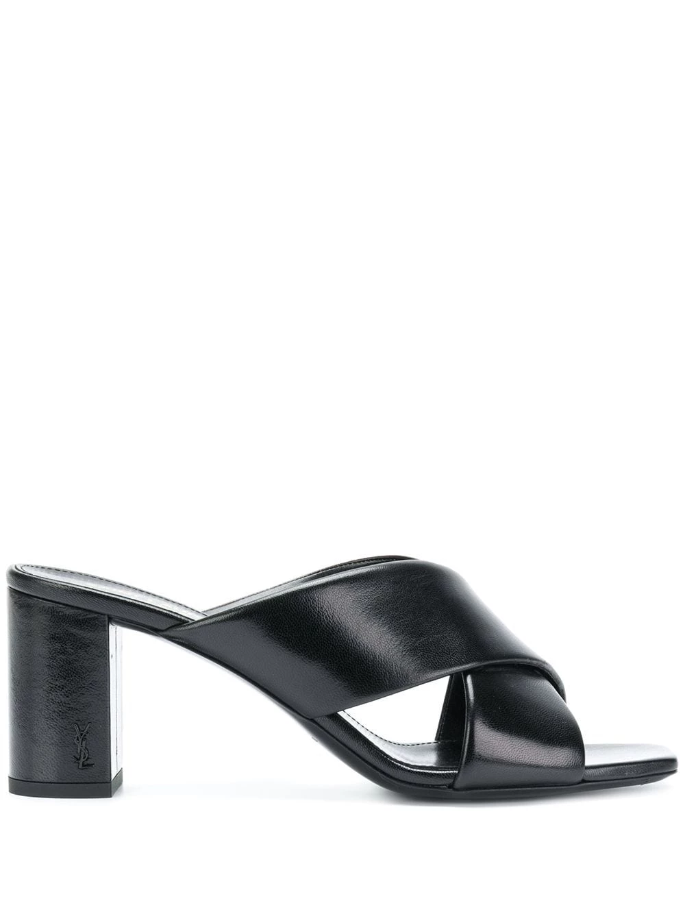Need a style upgrade? Designed with a slip-on style, these black leather Loulou mules from Saint Laurent are the quickest way to finish any look: from casual to classic. Level up! Featuring an open toe, a mid-high block heel, a strappy design, a cut-out detail and a branded insole.