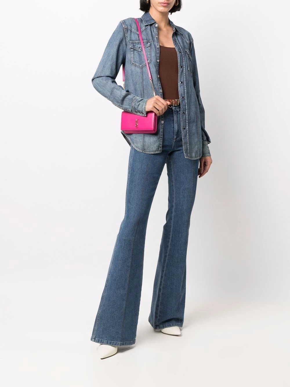 Bosting the House’s iconic YSL monogram plaque at the front, this Saint Laurent phone holder is crafted in Italy from smooth leather and finished with refined gold-tone hardware. It features a main internal compartment and can be worn across the body, on the shoulder or handheld thanks to a practical detachable strap.
