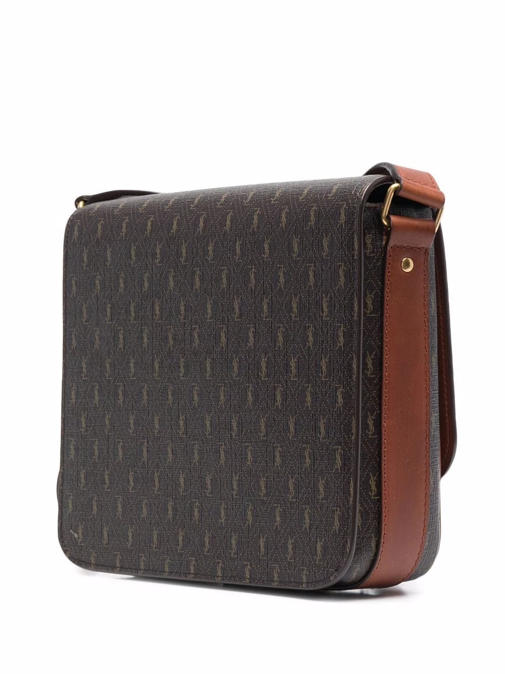 Reminiscent of โ70s-inspired styles, this messenger bag from Saint Laurent is infused with timeless appeal. Its leather-made design boasts the brandโs iconic Monogram print, complemented by a debossed front logo.