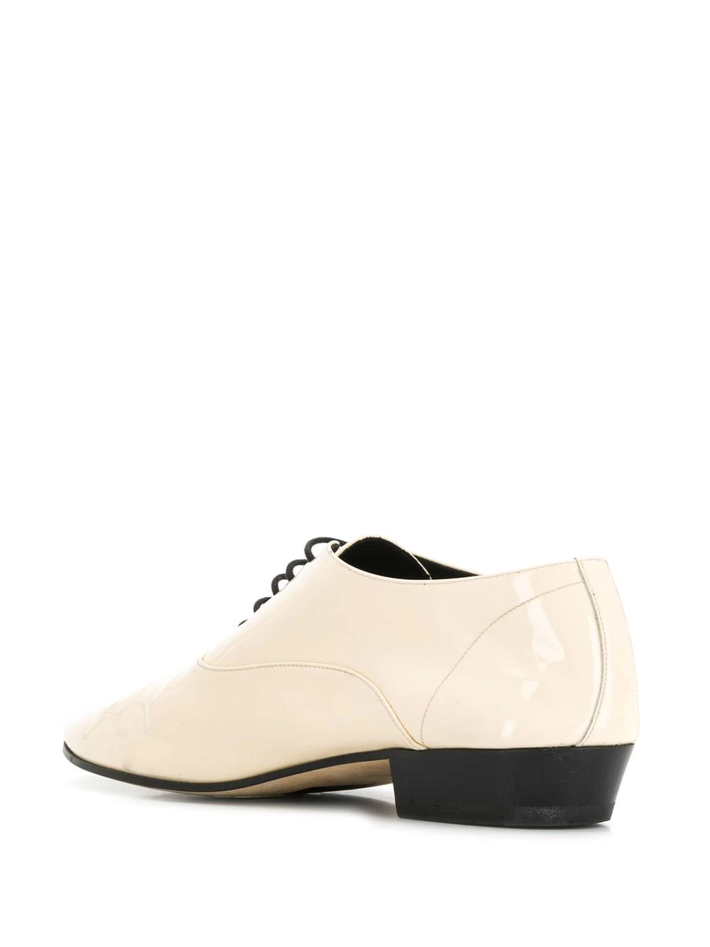 Spring is the time to ditch your dark winter wardrobe. Crafted from calfskin, these cream white patent leather Oxford shoes from Saint Laurent will brighten up your looks. Featuring a varnished finish, a round toe, a lace-up front fastening, a branded insole and a stacked heel.