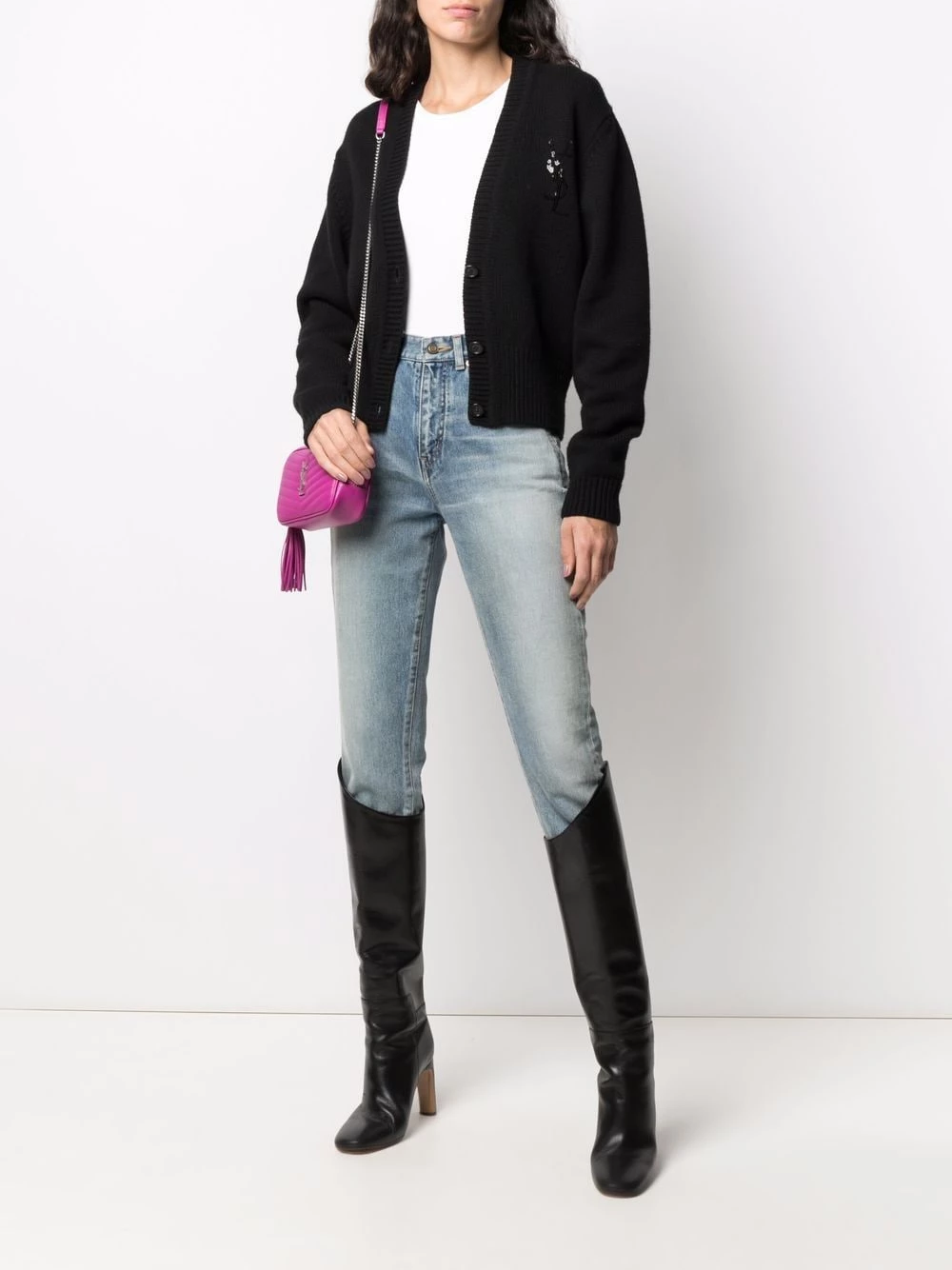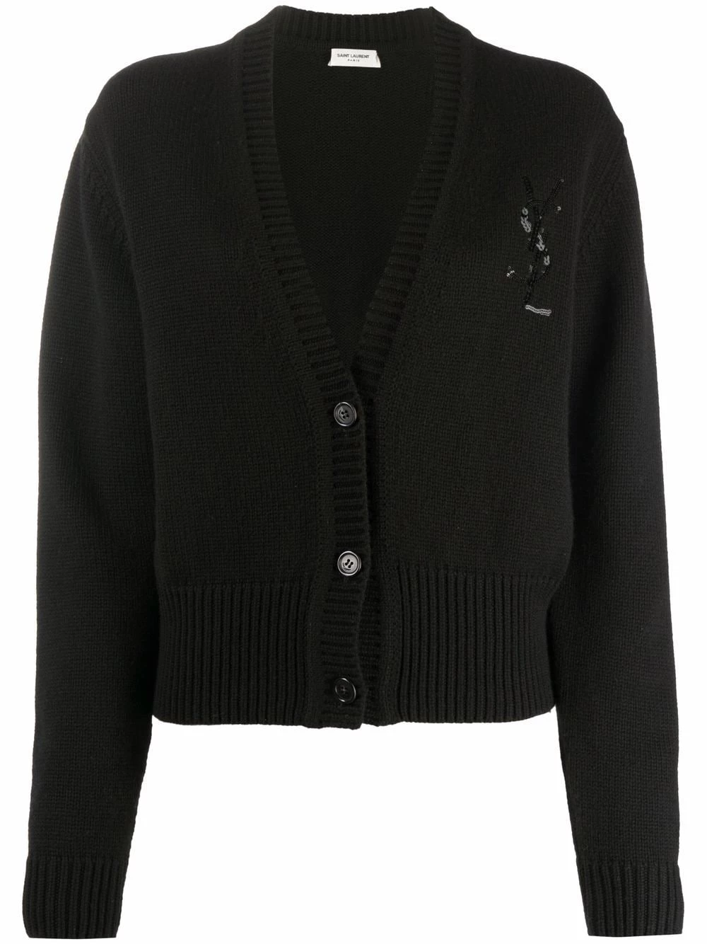 Saint Laurent proves that even the most casual of pieces can look sleek. Notice the discreet sequinned monogram at the chest of this cardigan.
