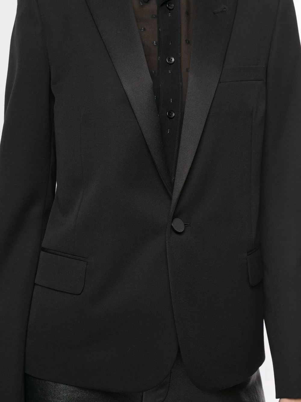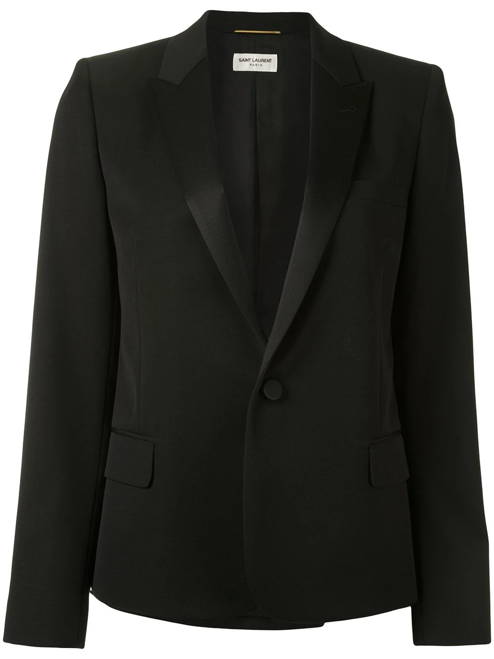 Going to a special event soon? Make sure you’ll be at your best with this black single-breasted blazer from Saint Laurent. Designed with classic peaked lapels, this piece will always add a classy vibe! Featuring peaked lapels, a front button fastening, a chest pocket, flap pockets, long sleeves, button cuffs and a rear central vent.