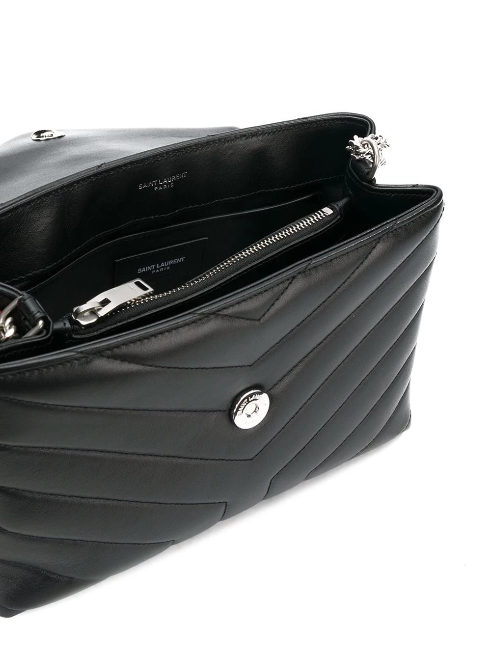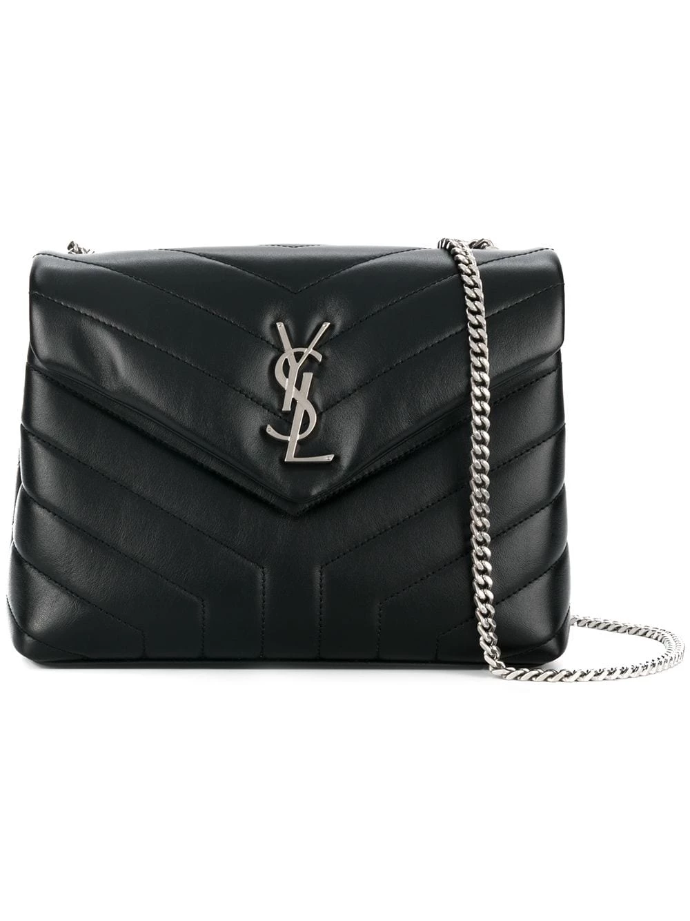 Finished with the brand’s iconic YSL plaque to the front, the Loulou bag is named after one of Yves Saint Laurent’s muses. In a compact silhouette, this small-sized version is designed in black chevron-quilted leather and features an organised interior with a zip-fastening pocket.
