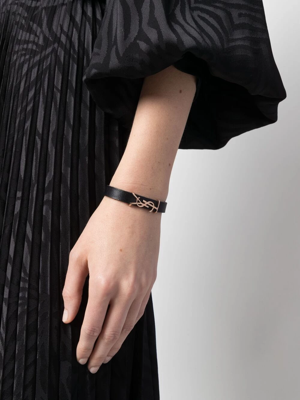 Name dropping seems to be an effective thing, but what about brand dropping? This Saint Laurent leather bracelet will do the job with its signature YSL plaque in gold-tone hardware. A simple gesture for a powerful outcome.