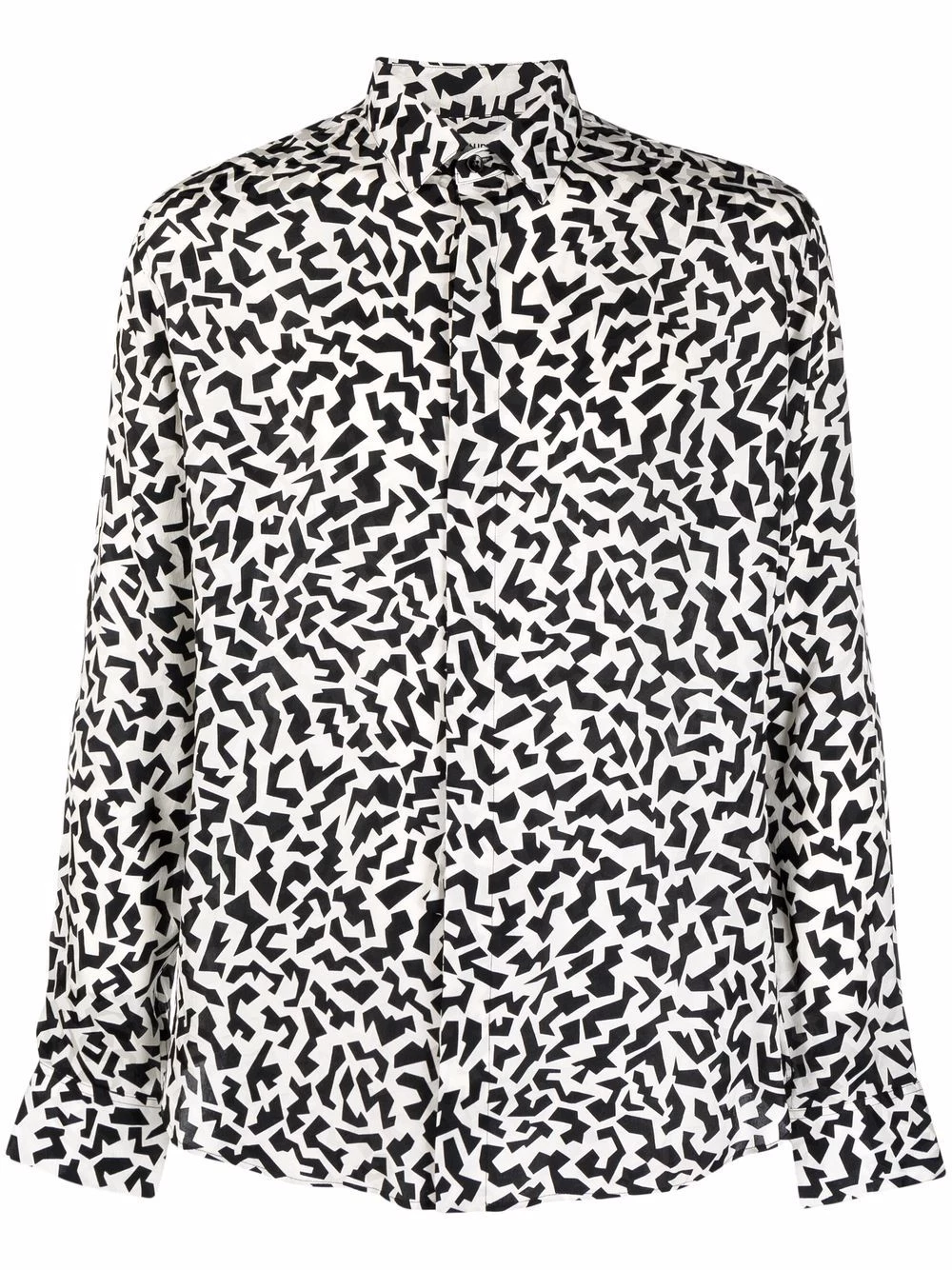 Saint Laurent Yves-collar sparkle-print long-sleeve shirt