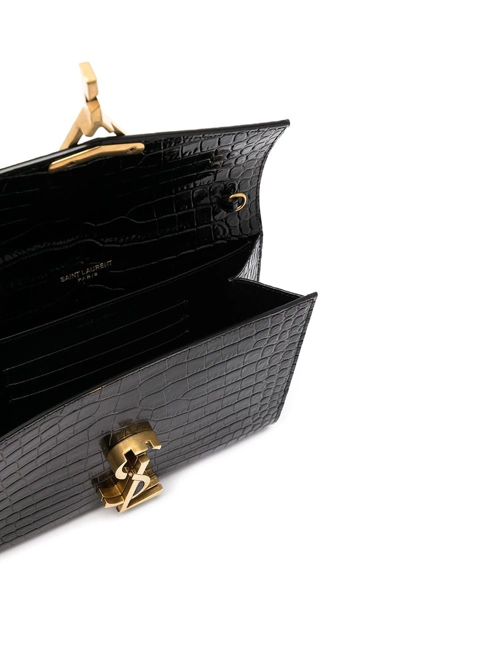 Combining the versatility of a shoulder bag and the practicality of a wallet, this Cassandra chain wallet bag from Saint Laurent is the perfect hybrid. Crafted from crocodile-effect leather and detailed with a signature gold-tone YSL logo plaque, this compact accessory is all you’ll ever need.