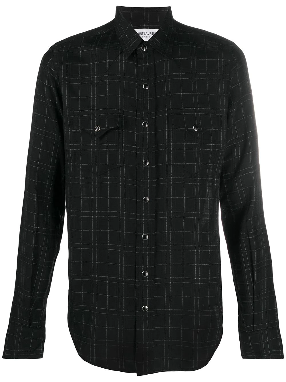 Lumberjack called, he wants the upgrade you got on your checked shirt. Crafted from black wool blend with a white small checked pattern, this shirt from Saint Laurent can be both casual and elegant.