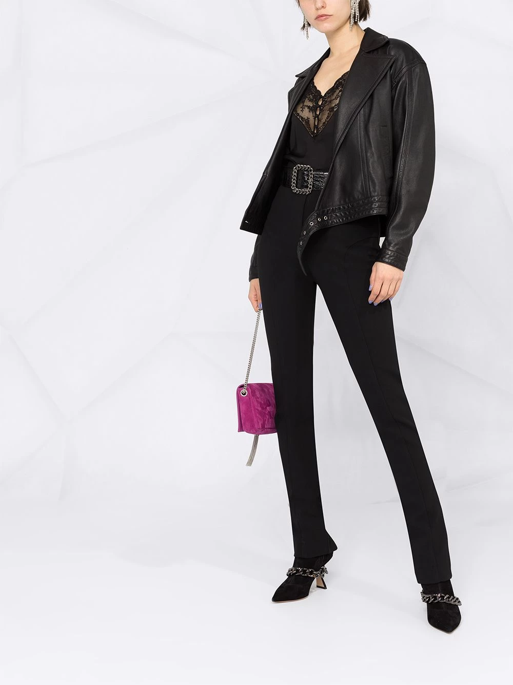 Plans for later? Allow this camisole style top from Saint Laurent to steal the show, with its floral lace trim and cropped design. Cheers to that.