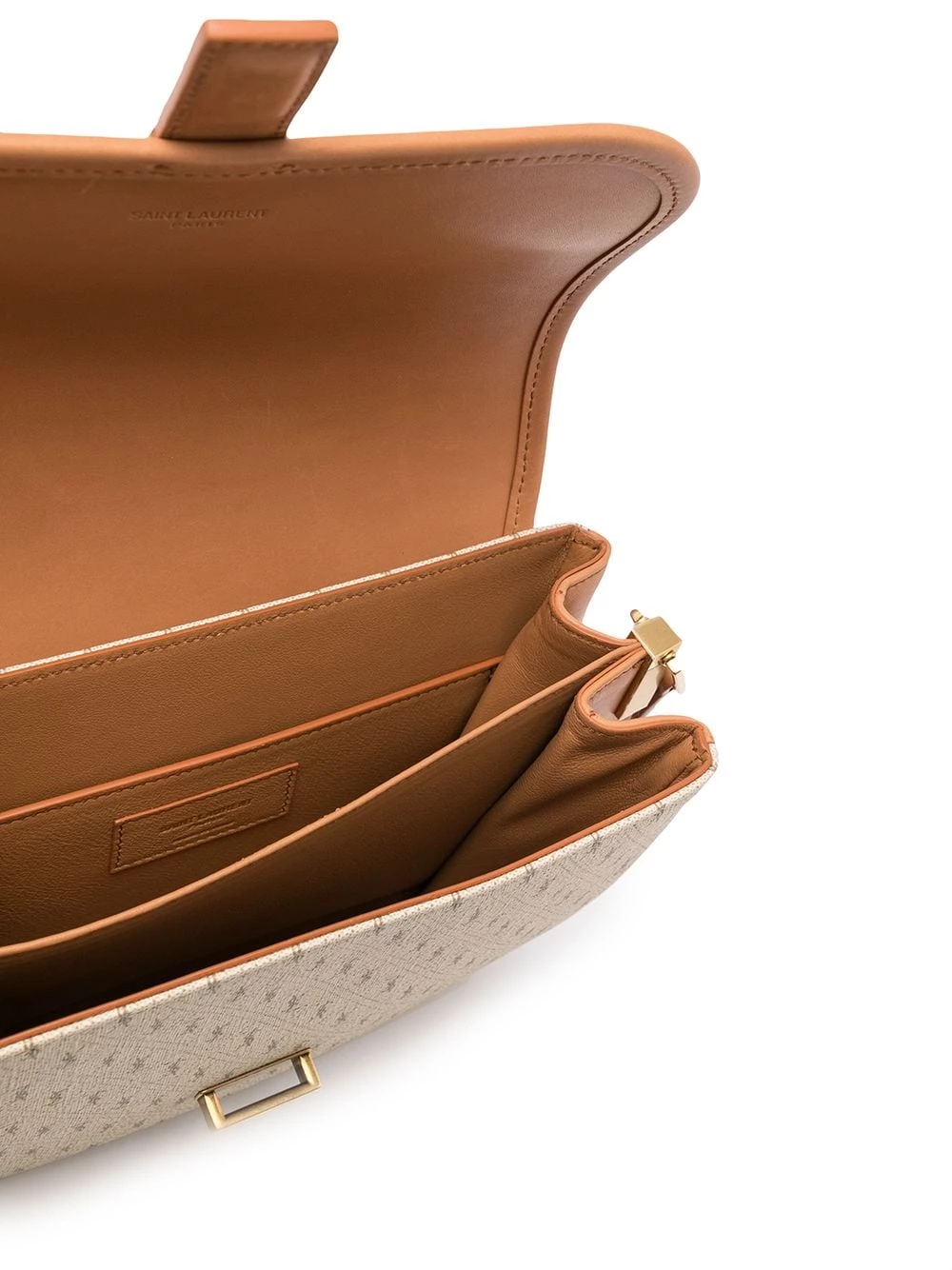 Practicality and elegance meet in this Saint Laurent crossbody bag, featuring an adjustable shoulder strap. This canvas design opens up to a partitioned interior complemented by an internal patch pocket. For a sophisticated finish, this piece features an all-over monogram pattern.