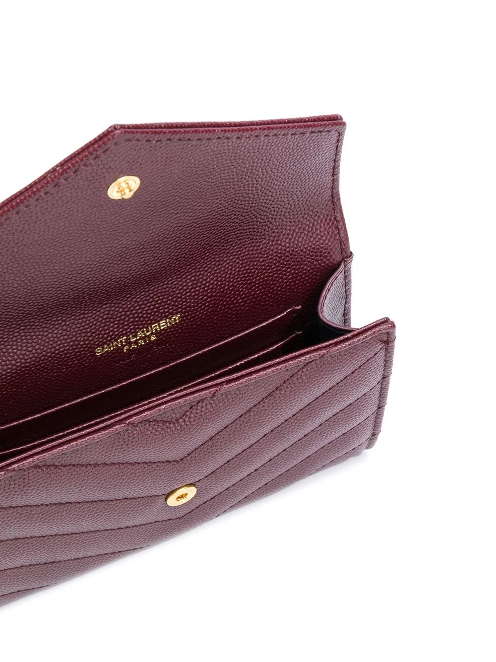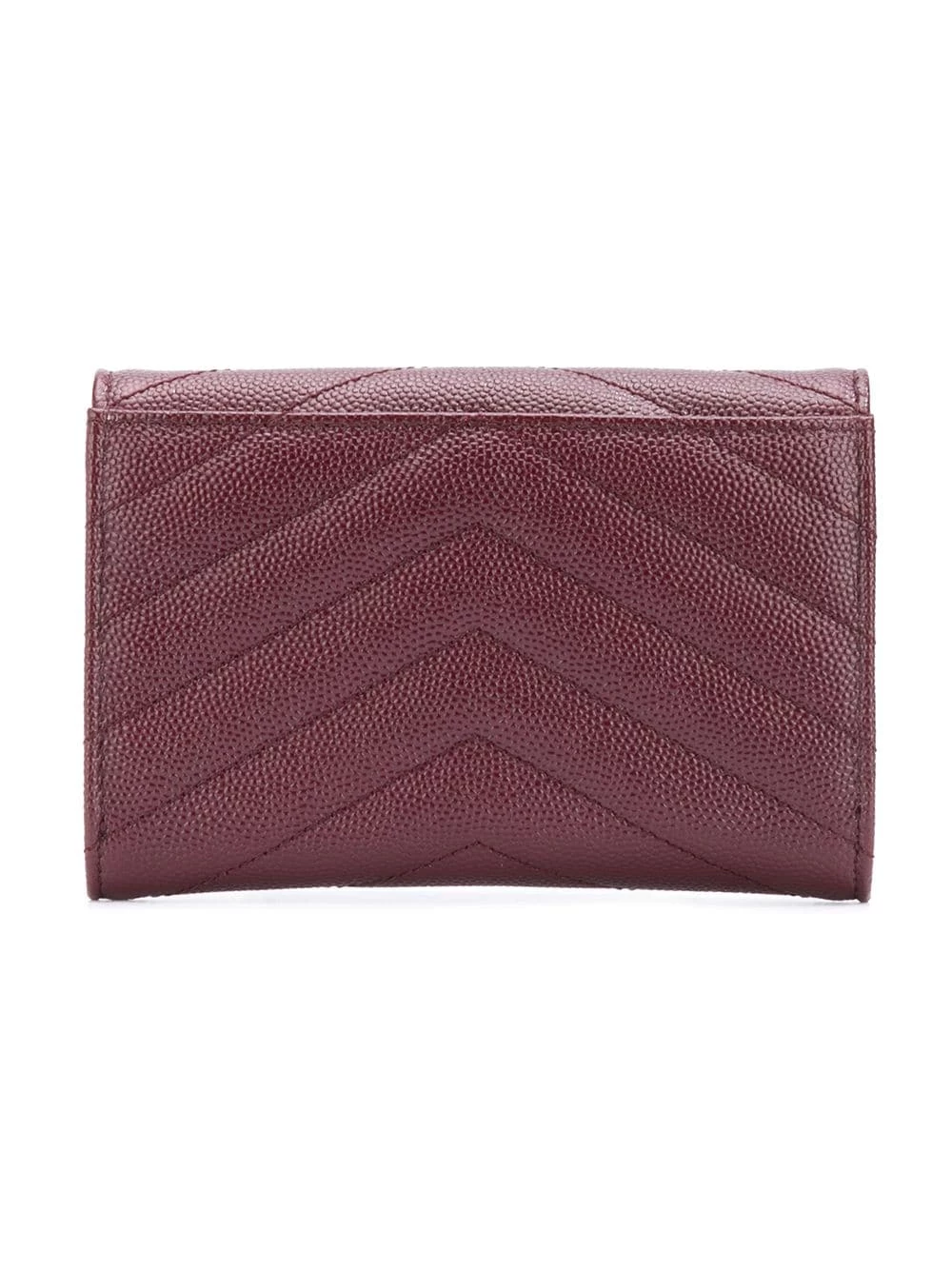Established in 1961 by Yves Saint Laurent, French fashion house Saint Laurent is coveted for its quintessential Parisian aesthetic. Showcasing adept craftsmanship alongside luxury fabrics and expert design; the beloved label remains a cult classic with every season. This red leather monogram wallet features a quilted effect, a gold-tone logo plaque, a snap fastening, multiple card slots and an embossed internal logo stamp.