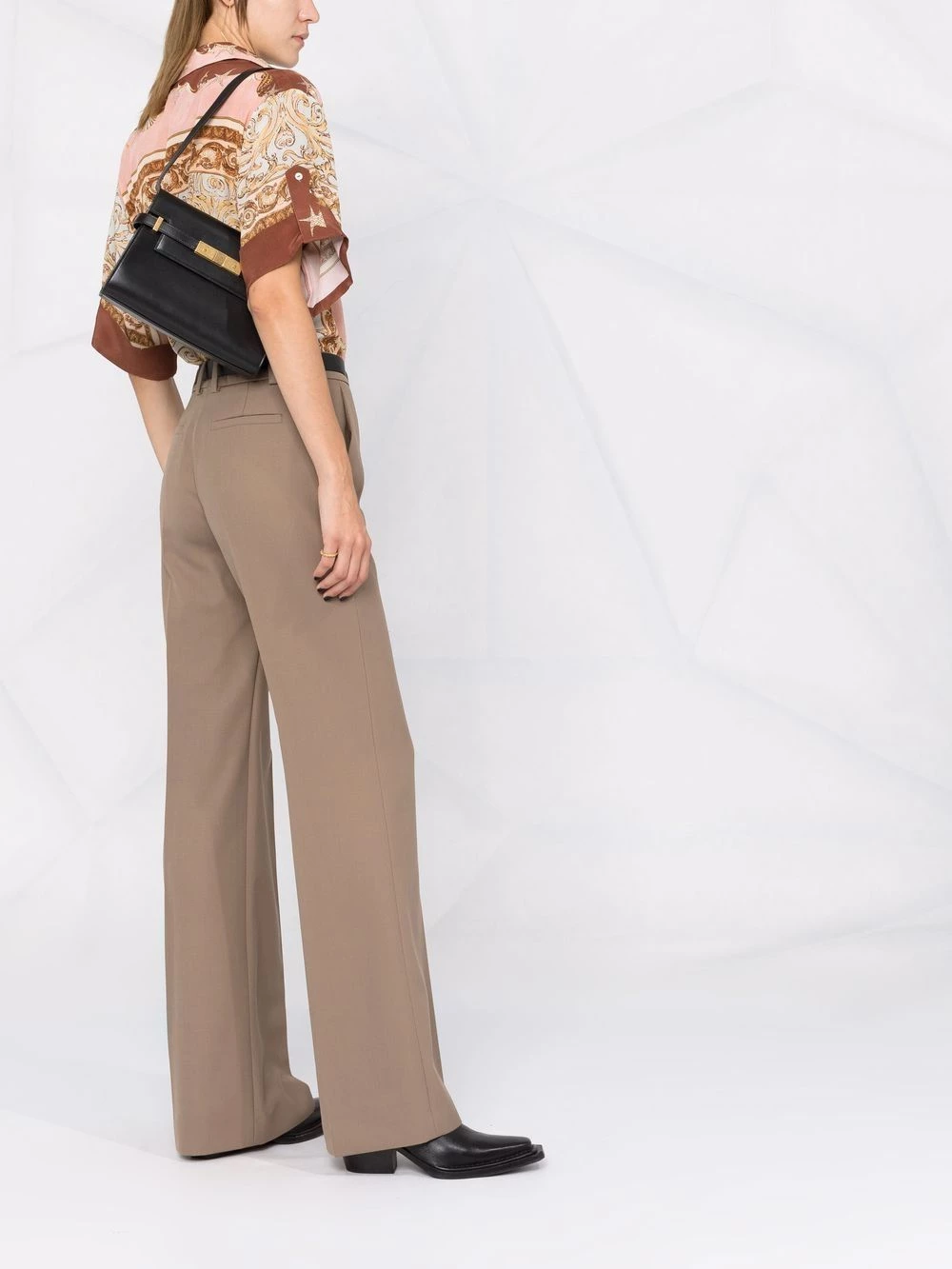This small Manhattan shoulder bag from Saint Laurent is a sleek way to organise essentials. Crafted from smooth calf leather, this slim accessory is fastened via a gold-tone magnetic clasp.