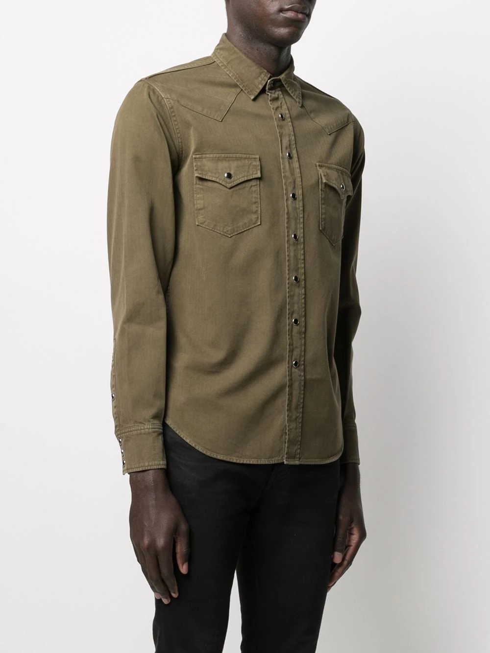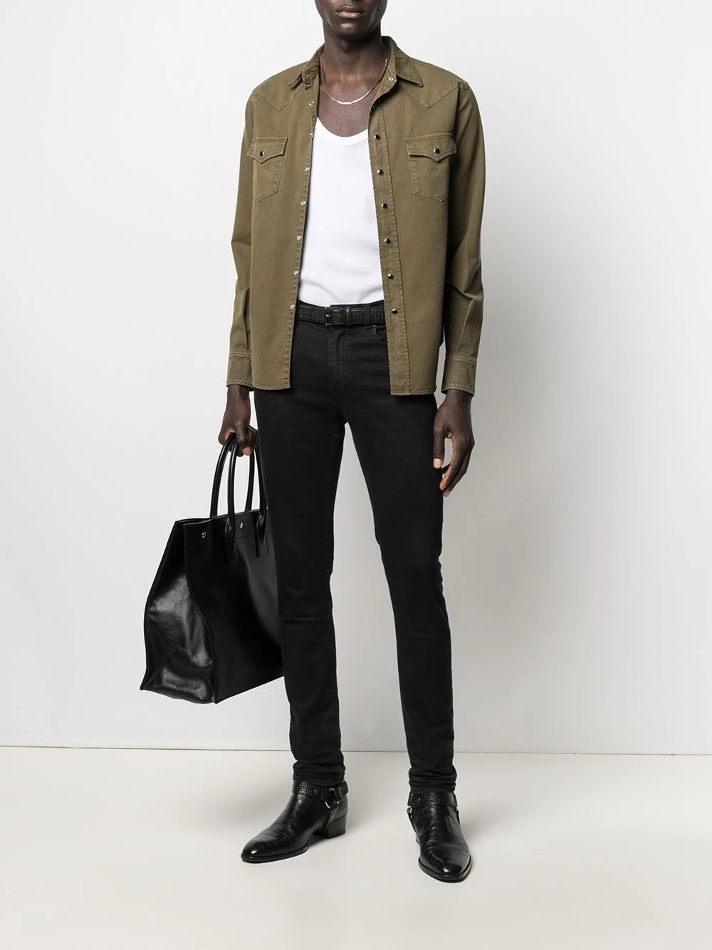 The rebel gentleman, courtesy of Saint Laurent. Crafted from cotton, this stonewashed western shirt will give a RocknRolla flair to your outfit. Glamour and fame await.
