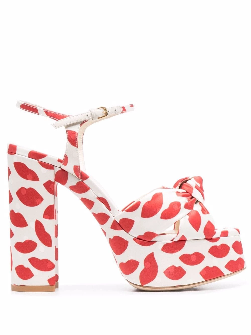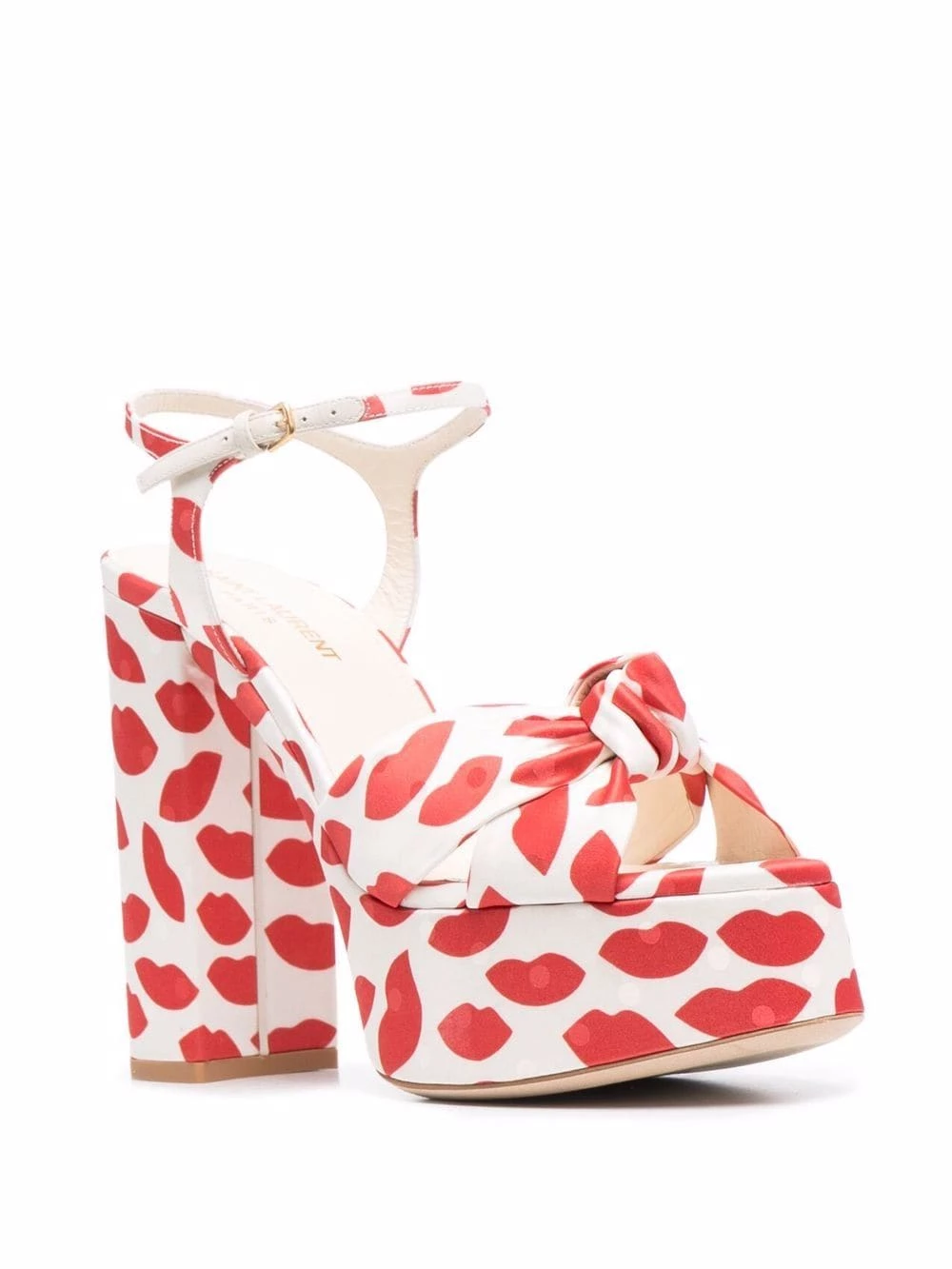 French fashion house Saint Laurent excels at creating covetable footwear infused with the labelโs indisputable Parisian elegance. Expertly crafted in Italy from white leather and decorated with red lips, these Bianca platform sandals feature an open toe and a twisted strap at the front.