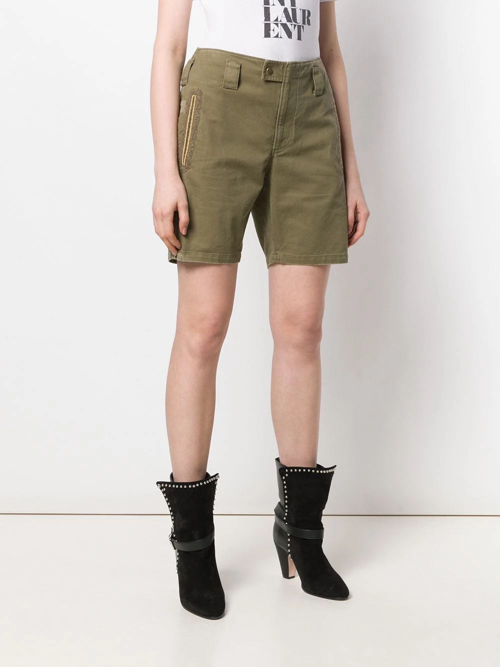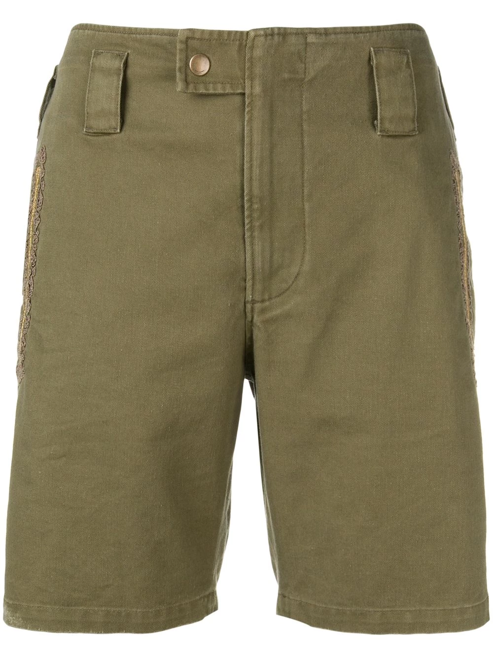 Founded in 1961 by innovative designer Yves Saint Laurent, French luxury fashion house Saint Laurent fuses expert craftsmanship with the label’s signature rock ‘n’ roll flair. Crafted from a green cotton blend, these embroidered detail shorts from Saint Laurent feature a waistband with belt loops, a button and zip fly and side pockets.