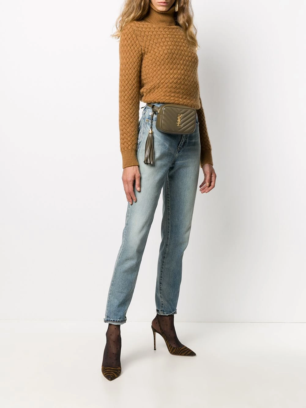 Find the perfect companion in this Lou matelassé belt bag from Saint Laurent. Crafted from calf leather, this compact accessory has been punctuated by the signature gold-tone YSL monogram and attached chain tassel detail. Meet your new best friend.