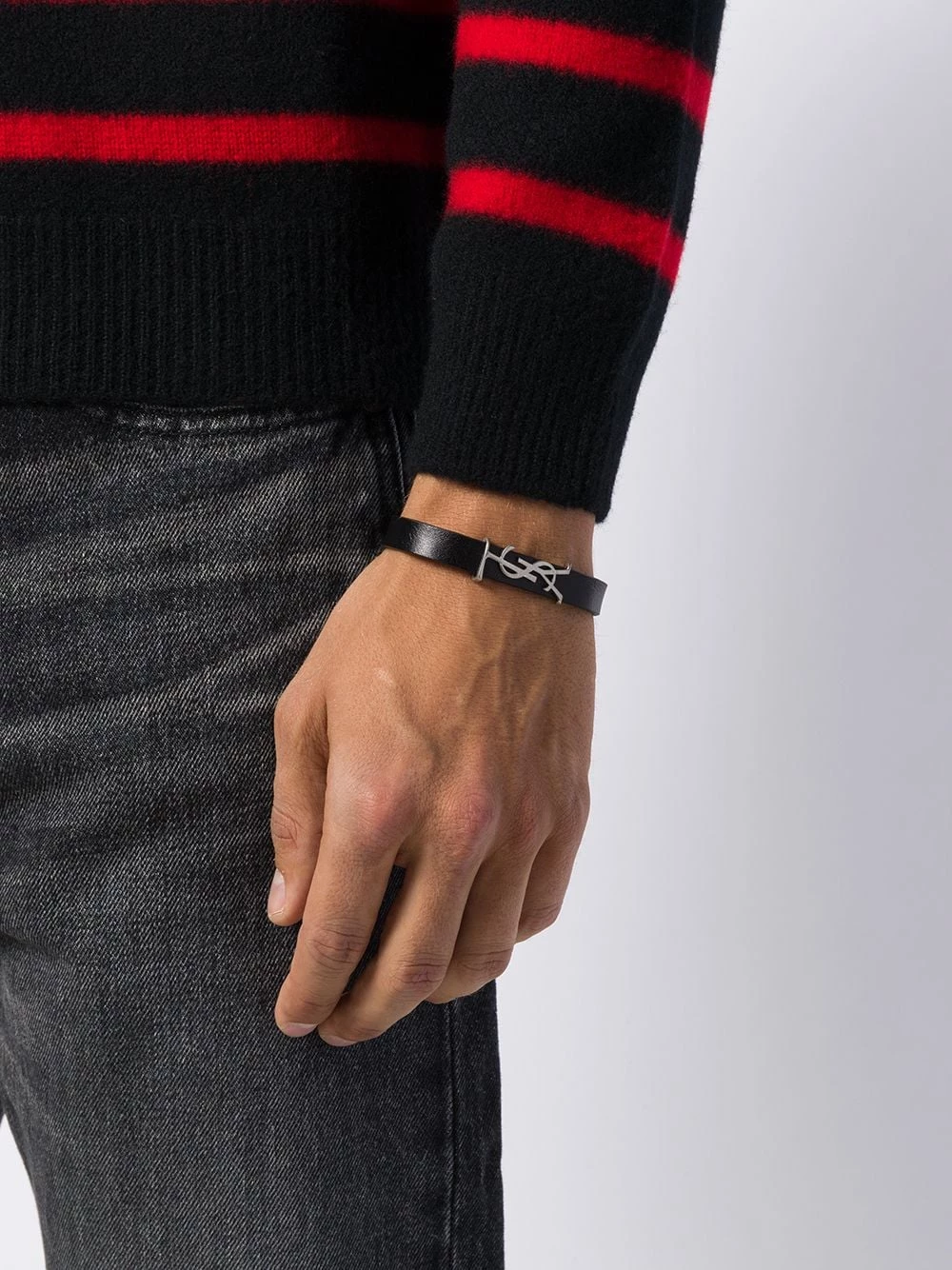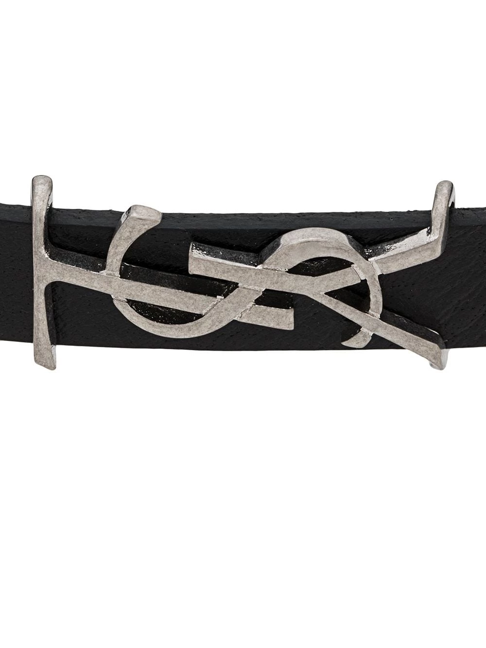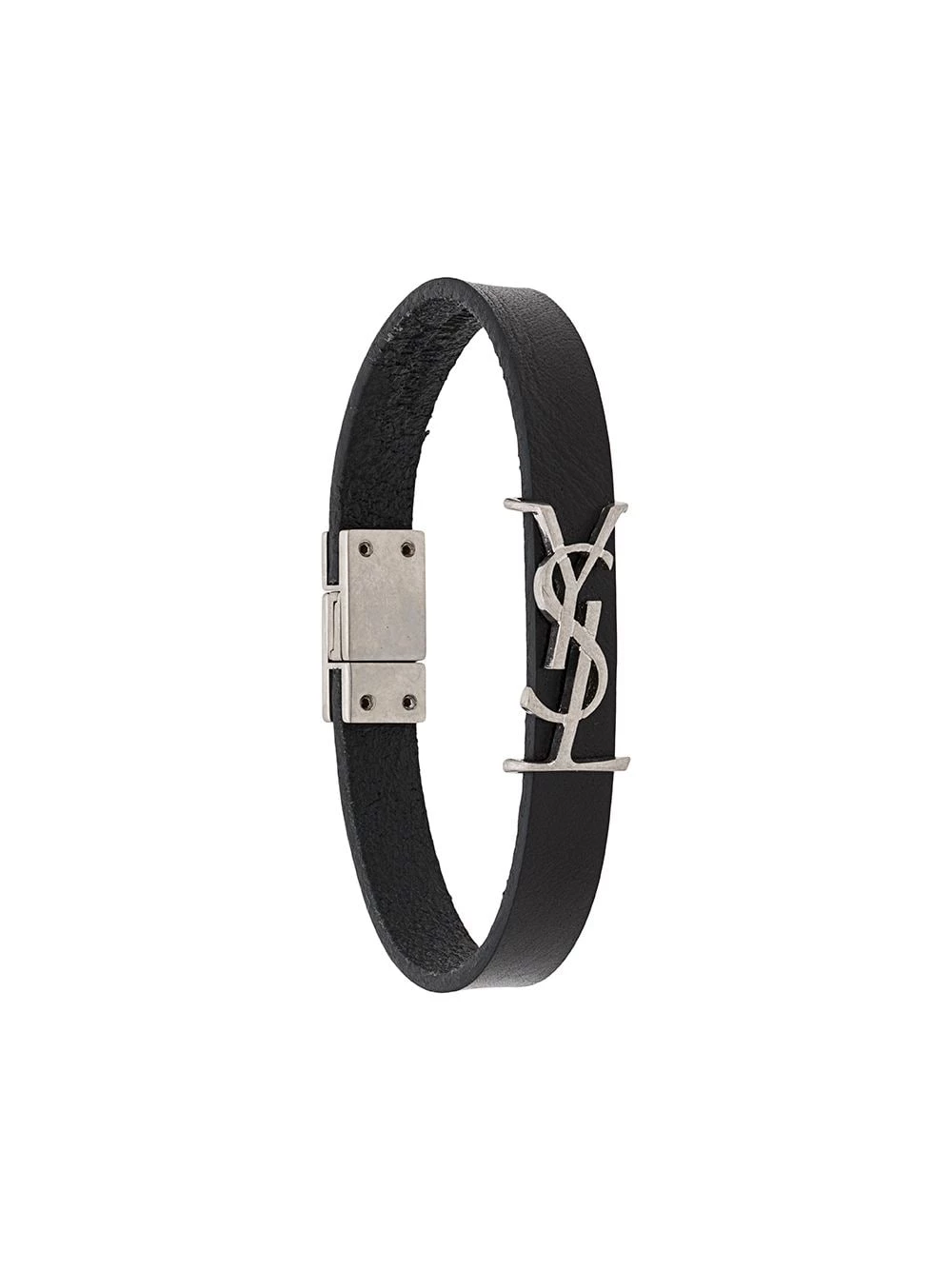 Find the perfect finishing touch in this monogram bracelet from Saint Laurent. Crafted from calf leather, this subtle accessory has been designed with a silver-tone metal YSL detail and a clasp fastening. Edgy and elegant all wrapped up.