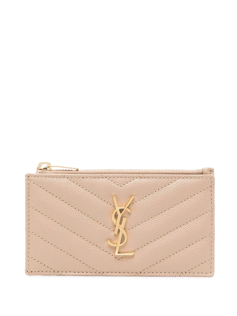 A place to store your bank cards? This beige quilted pebbled leather cardholder from Saint Laurent is a great option for that. Think about it.