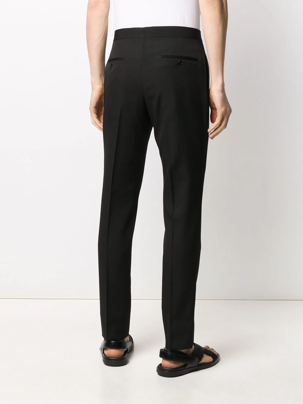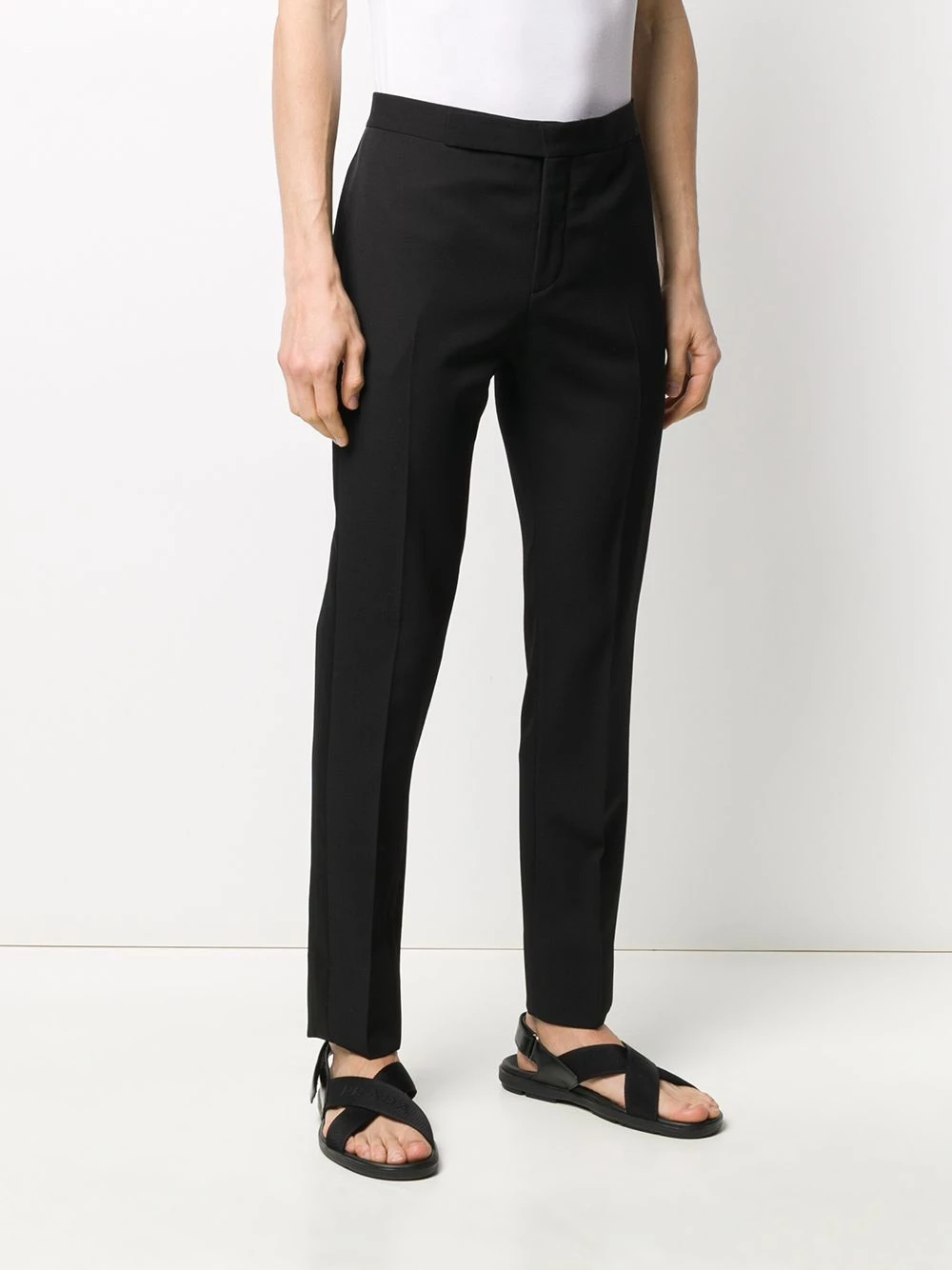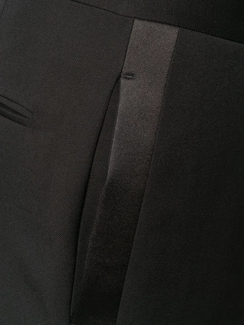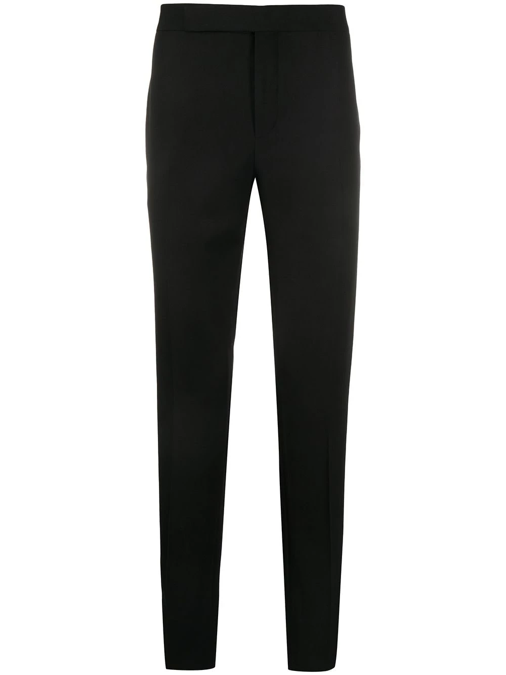 If you have to go to another one of those meetings or sit down on your in-lawโs sofa listening to that joke about a golfer for the million time, you might as well do it in Saint Laurent. And these black side-stripe trousers will see that you’re not the joke.ย