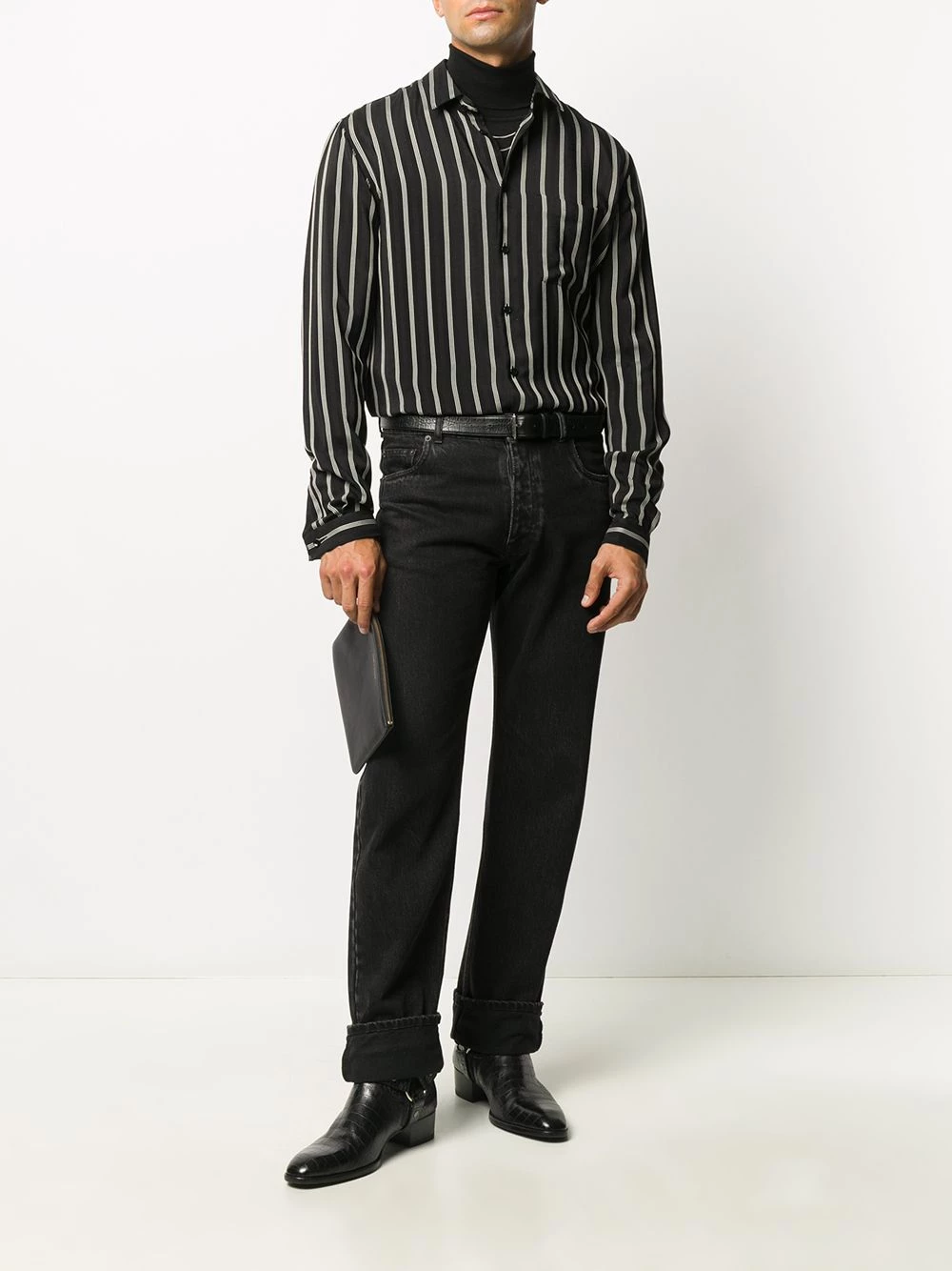 Need to refresh your shirt wardrobe? Saint Laurent says make it silk. Featuring a classic collar, long sleeves and chest patch pocket. You’ve earnt these stripes.