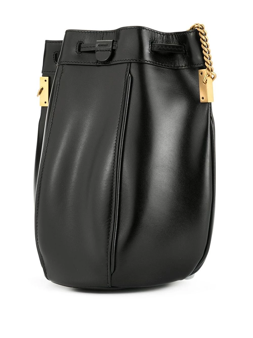 No, this black leather small Talitha bucket bag from Saint Laurent is not your grandmother’s old bread bag. Either way, it will fit your favourite snacks so you can keep your sugar levels stable at any event. Yes, we know catering is not always what we expected. Featuring a drawstring fastening, an internal slip pocket, a gold-tone logo, stitched panels and a gold-tone chain shoulder strap.