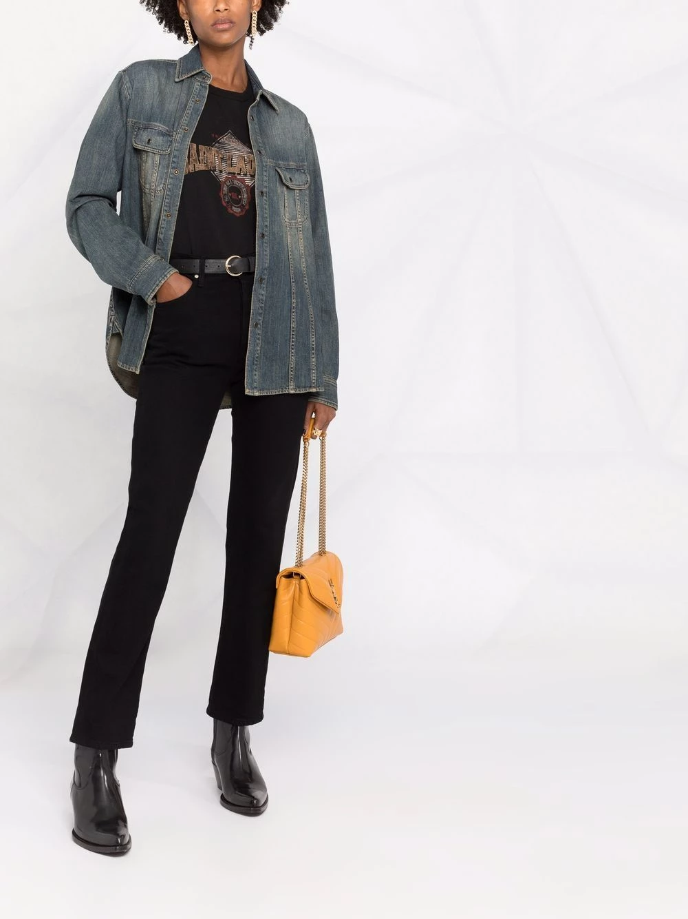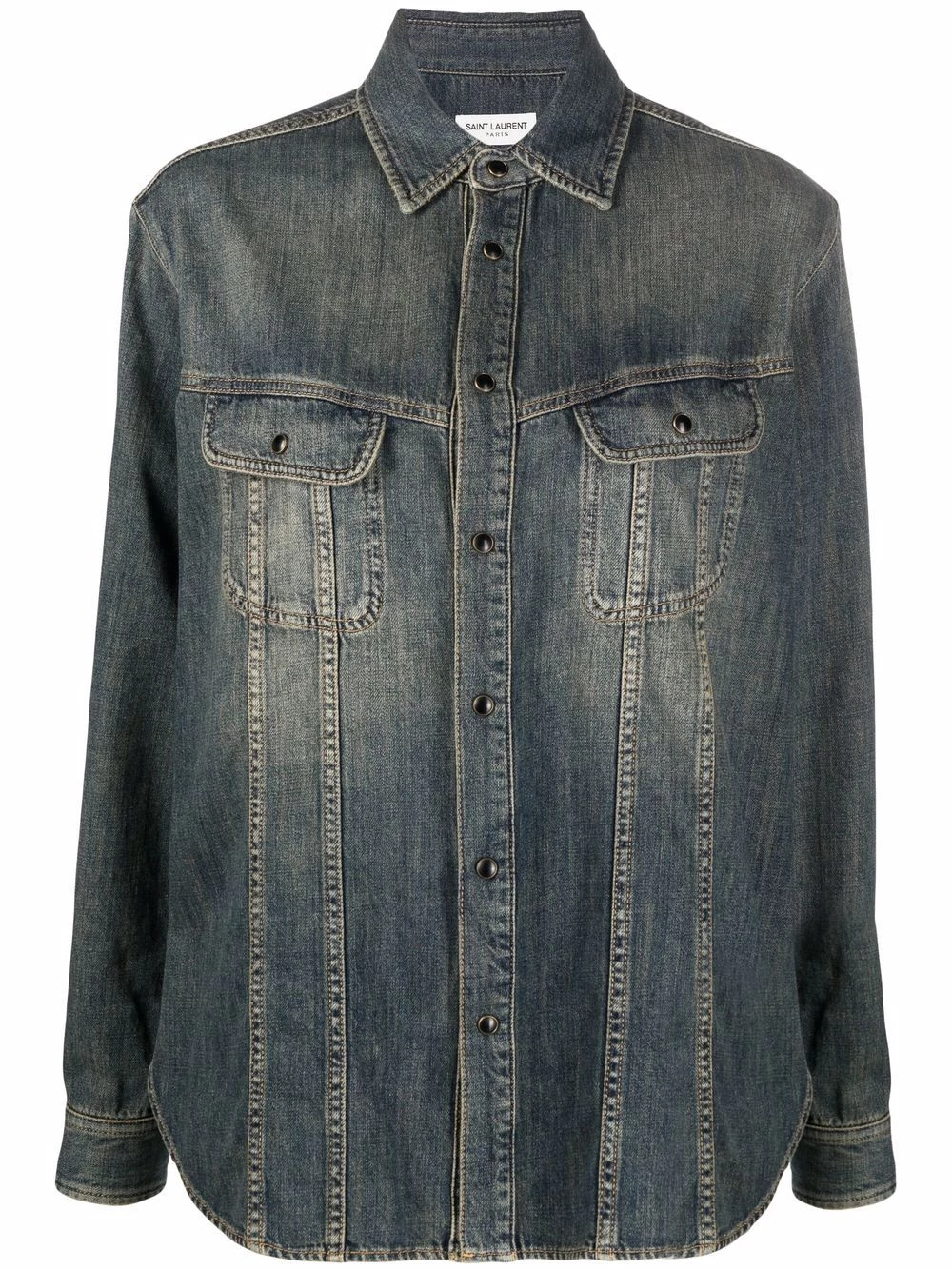 Saint Laurent’s denim shirt is designed with a faded effect for a love-worn aesthetic. The long-sleeve design buttons up with press-stud fastenings and has a casual curved hem.
