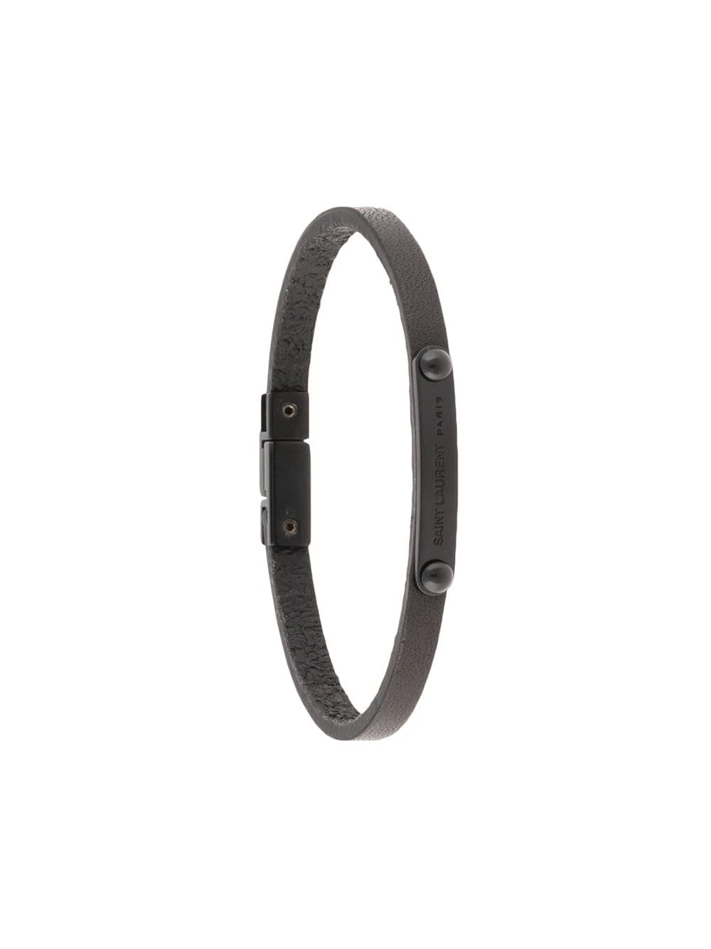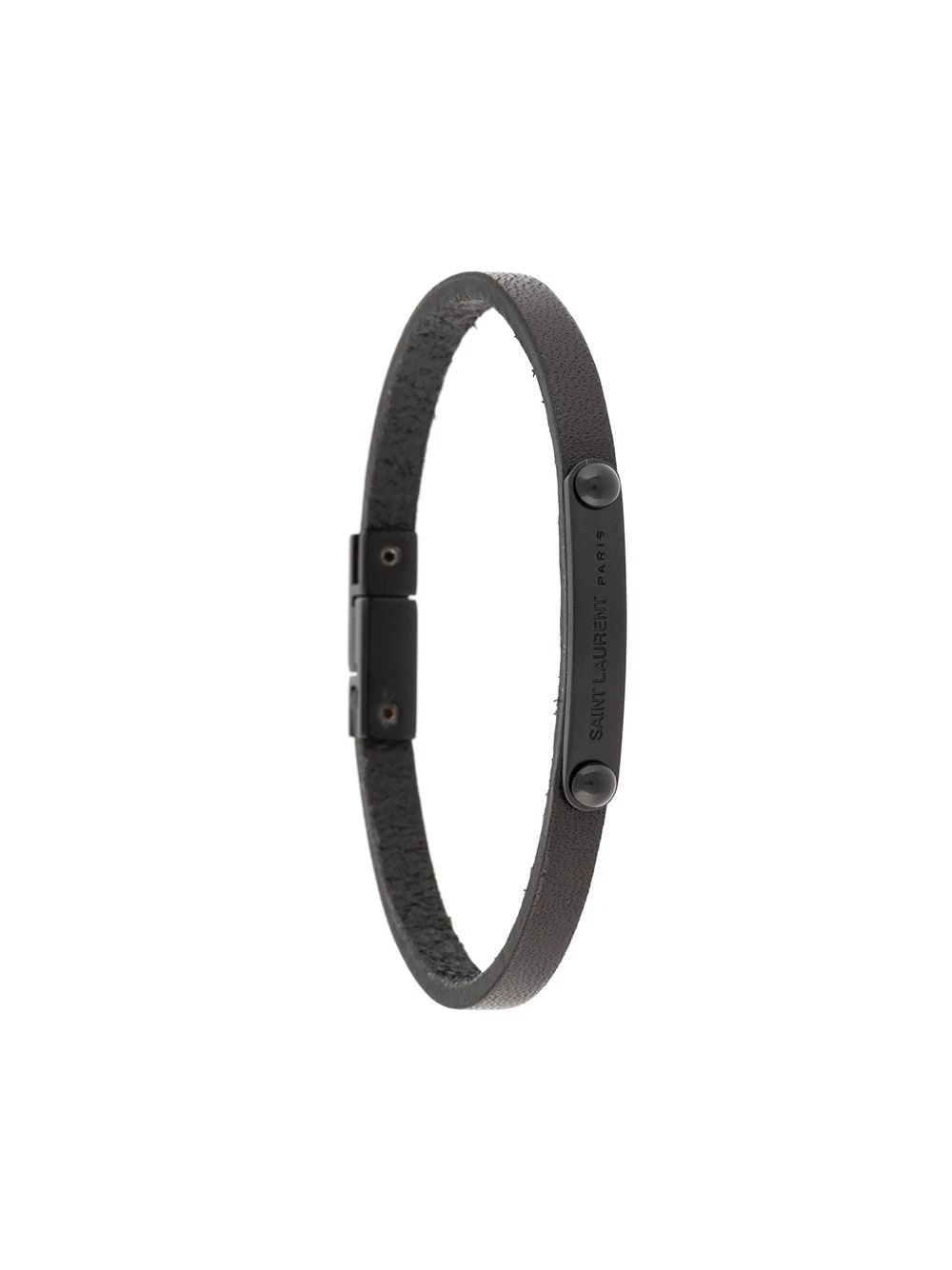 Saint Laurent shows us that branding doesn’t have to be bold to be effective. Case in point: this black leather bracelet with discreet tonal logo plaque. Less is more.