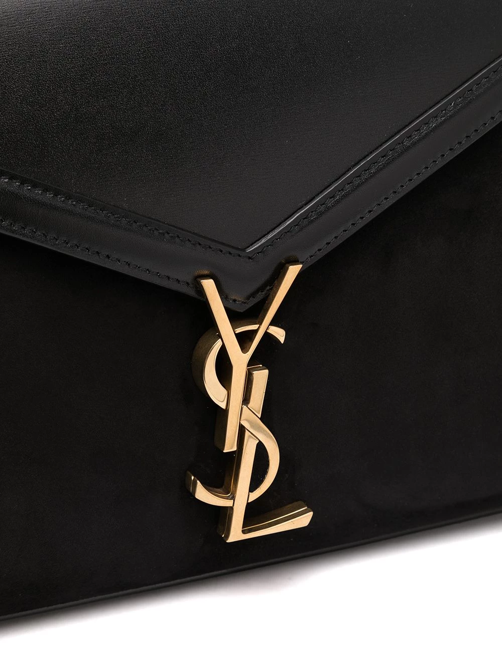 Crafted from smooth black leather, this Saint Laurent top-handle bag is designed as a tribute to graphic designer Adolphe Jean-Marie Mouron, otherwise known as Cassandra, who designed the iconic ‘YSL’ monogram in 1961.