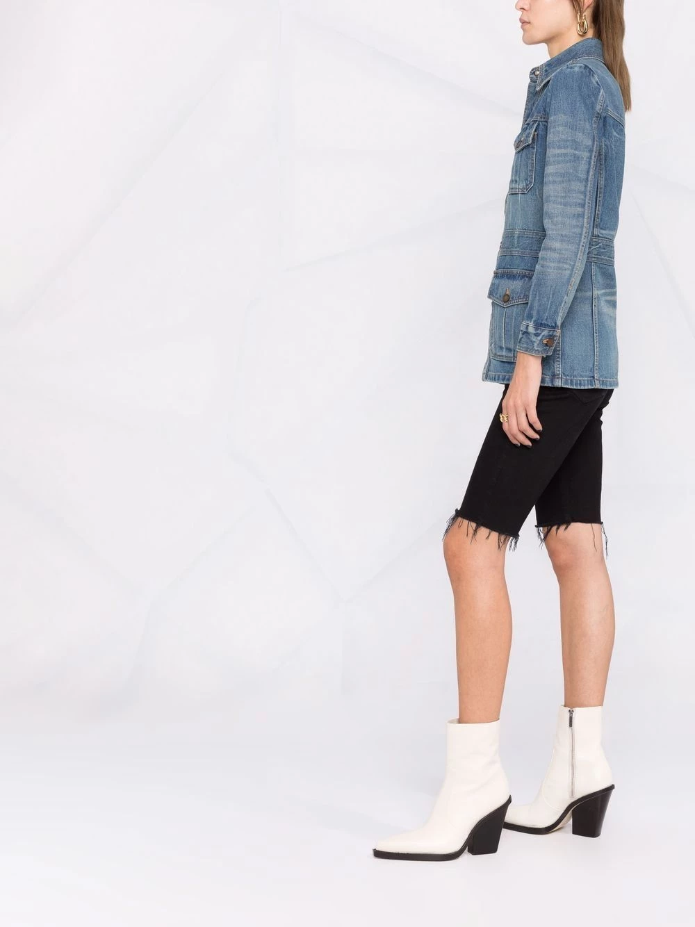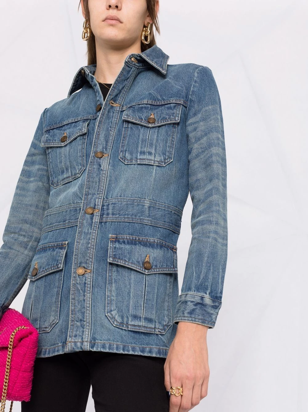 Practical and versatile, this Saint Laurent denim jacket is designed in blue colour and detailed with four button pockets on the front. The 100% cotton construction gives a soft touch to the piece.