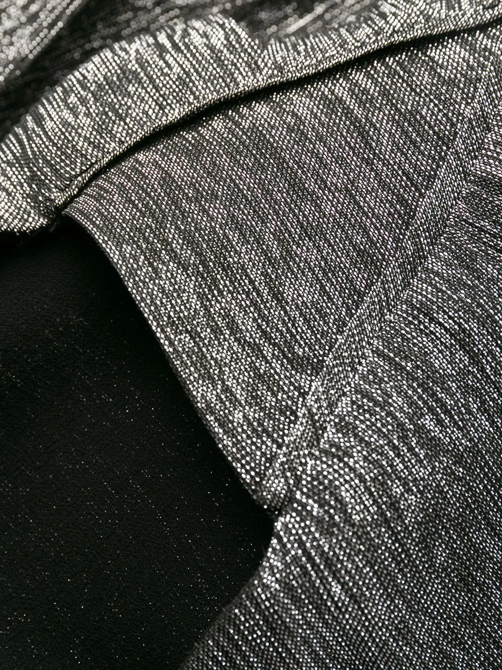 Founded in 1961 by innovative designer Yves Saint Laurent, French luxury fashion house Saint Laurent fuses expert craftsmanship with the label’s signature rock ’n’ roll flair. This silver-tone ruffle trim mini dress features a round neck, half sleeves, a back button fastening, a concealed side zip fastening, a cinched waist, a short length, metallic threading and a tiered ruffle skirt.