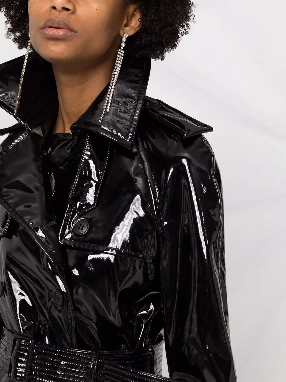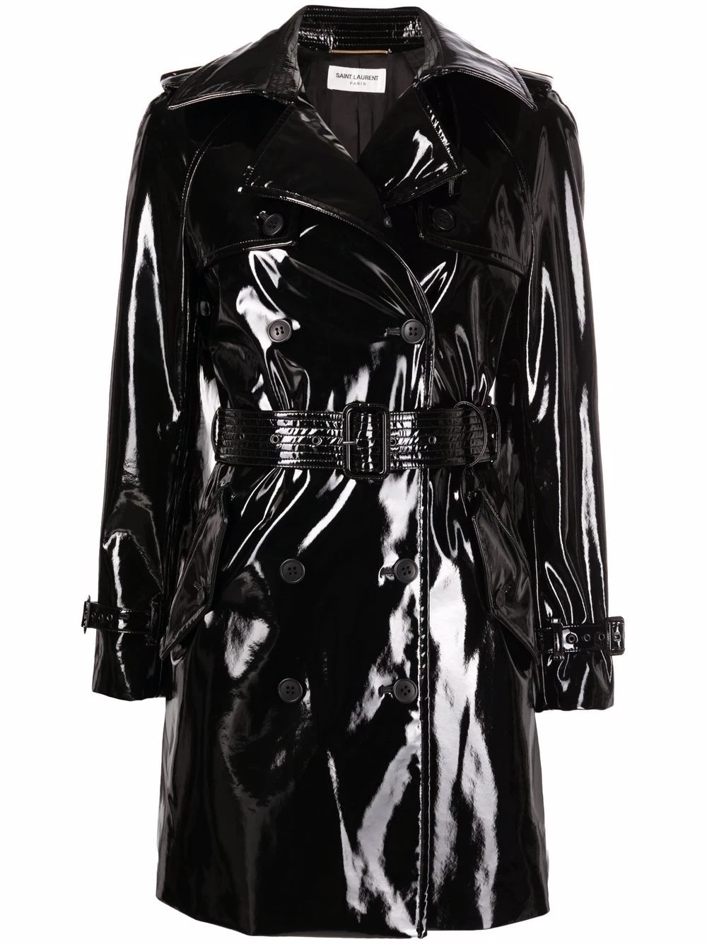 Saint Laurent came from the future to tell you that this black stretch-vinyl trench coat will be the hit piece of the season. We know you like to be a step ahead.