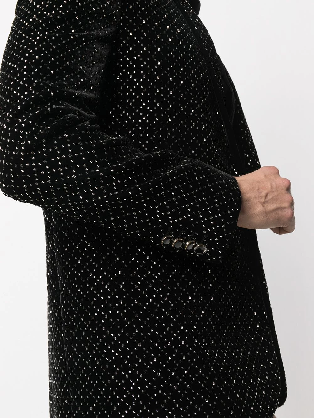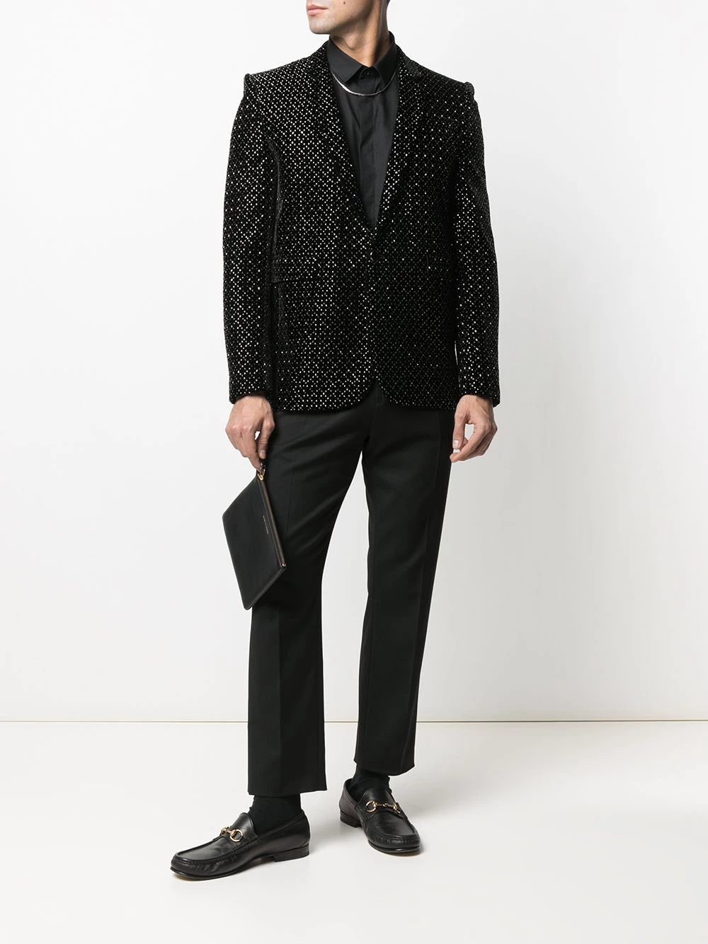 Who says formalwear is boring? Certainly not Saint Laurent. Featuring stud embellishments, this blazer will add a sparkling touch to your outfit. Shine on.
