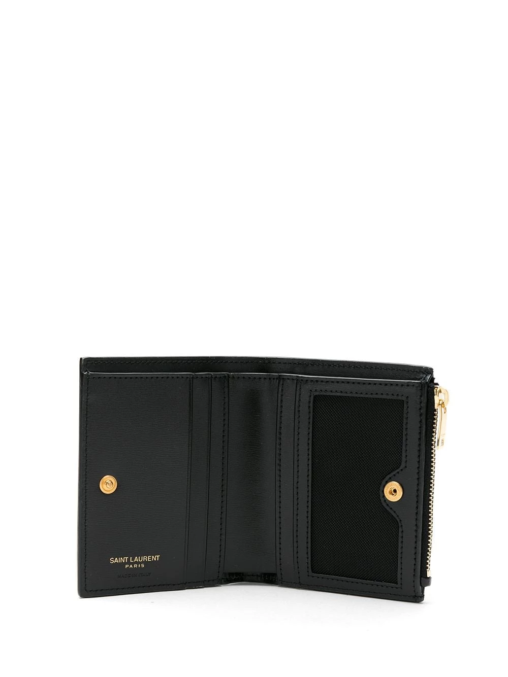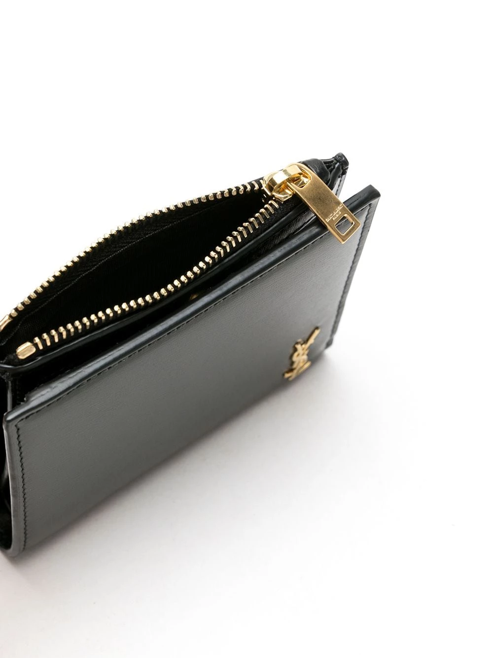 Never lose sight of what’s most important with this sleek black calf leather wallet from Saint Laurent. Detailed with the label’s signature YSL moniker in complementary gold-tone hardware; this tiny Monogram zip wallet is timelessly stylish. Sounds good to us.