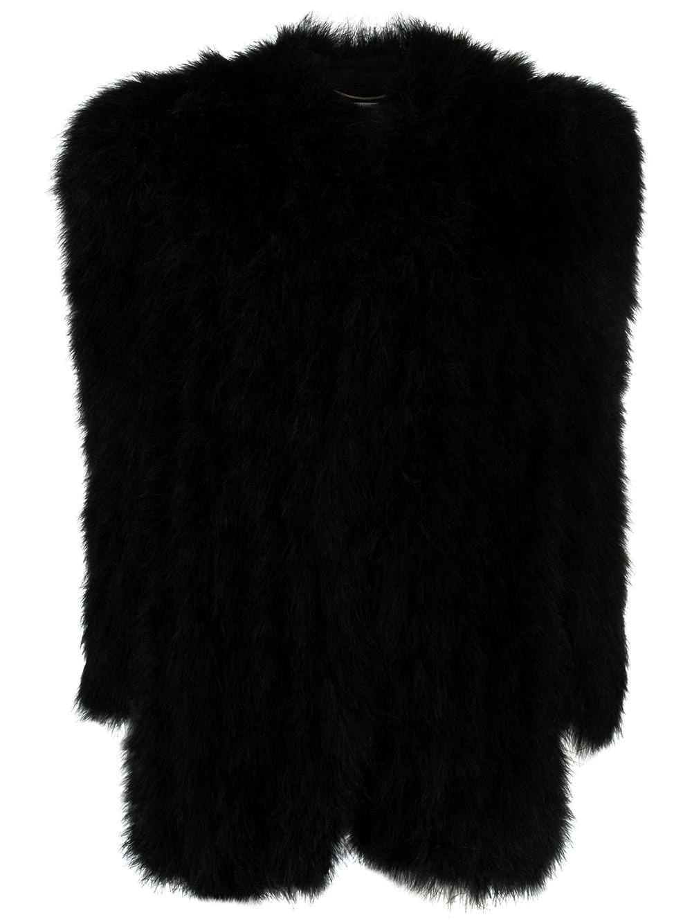 Tend to fall in love easily? Proceed carefully then as you try this Saint Laurent coat. Bound to sweep you off of your feet, it showcases a charismatic wide-shoulder design. You’ve been warned.