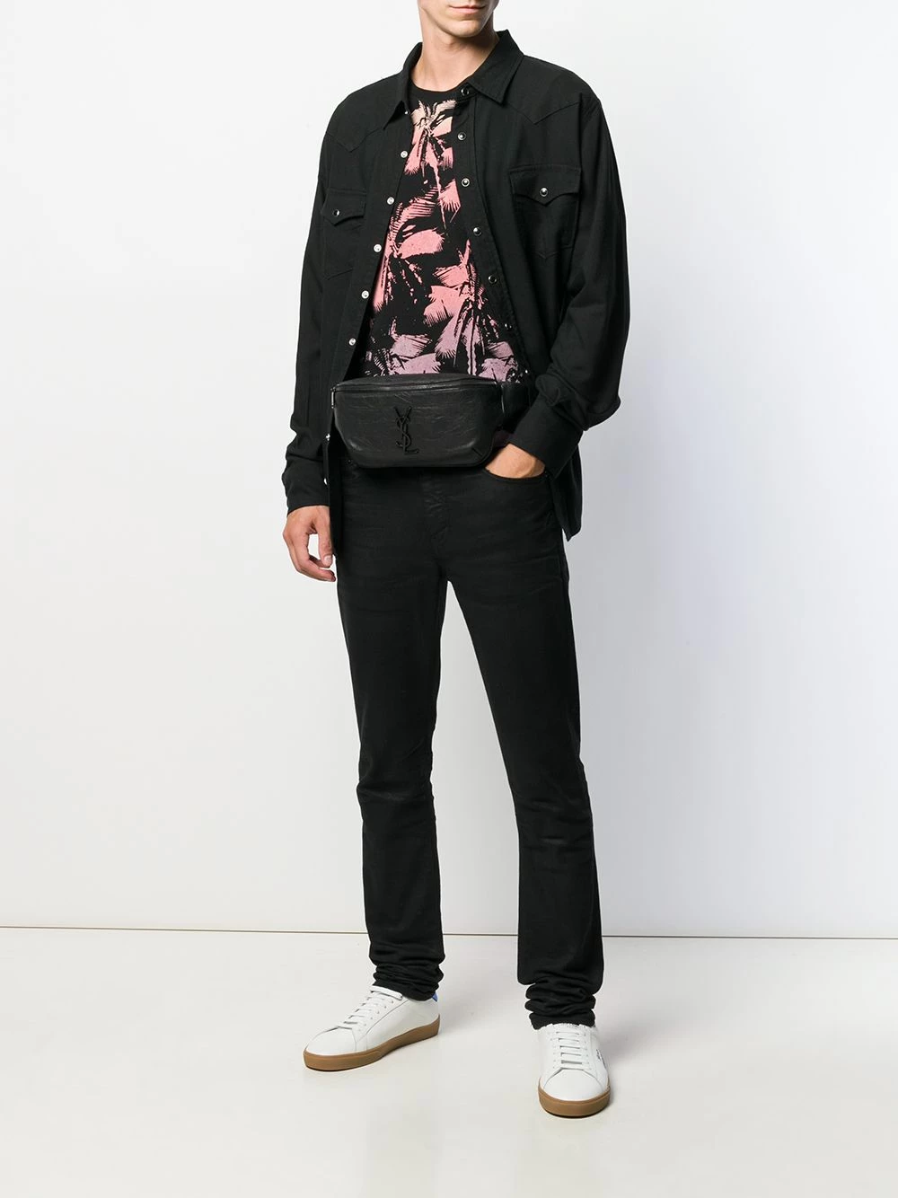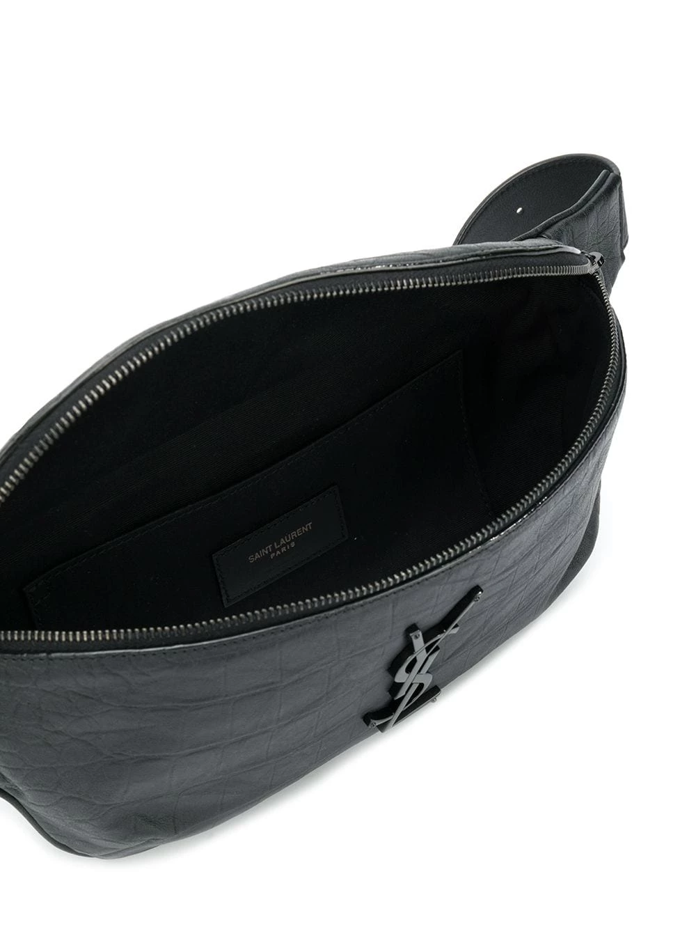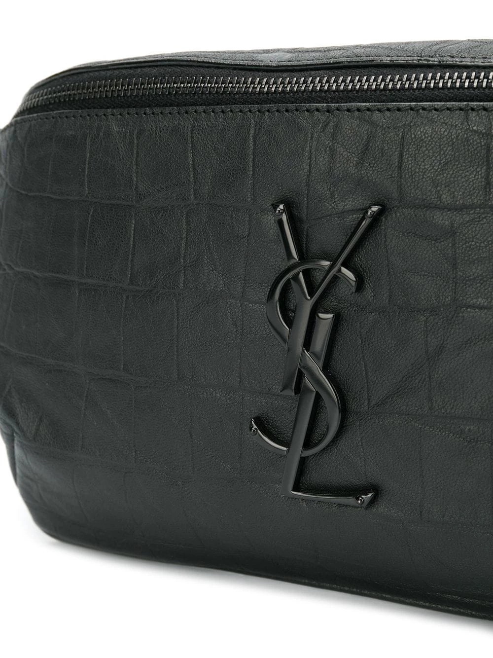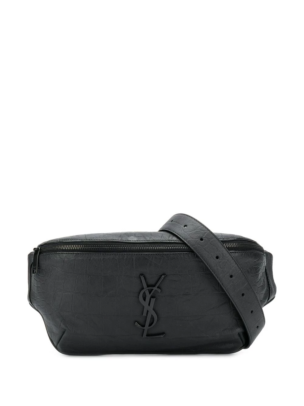 Founded in 1961 by innovative designer Yves Saint Laurent, French luxury fashion house Saint Laurent fuses expert craftsmanship with the label’s signature rock ‘n’ roll flair, as showcased with this black leather YSL belt bag. Featuring a front logo plaque, an embossed crocodile effect, a top zip fastening, an internal logo patch and an adjustable fit.