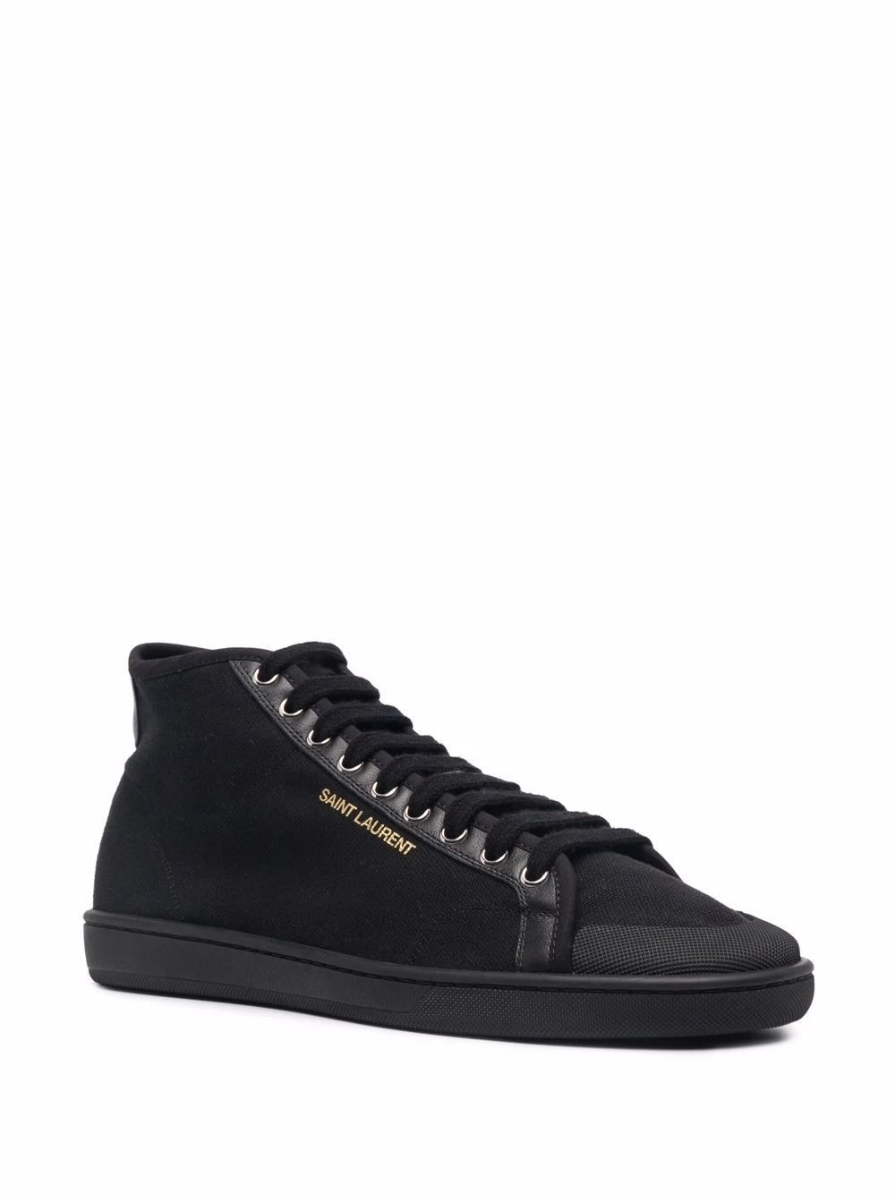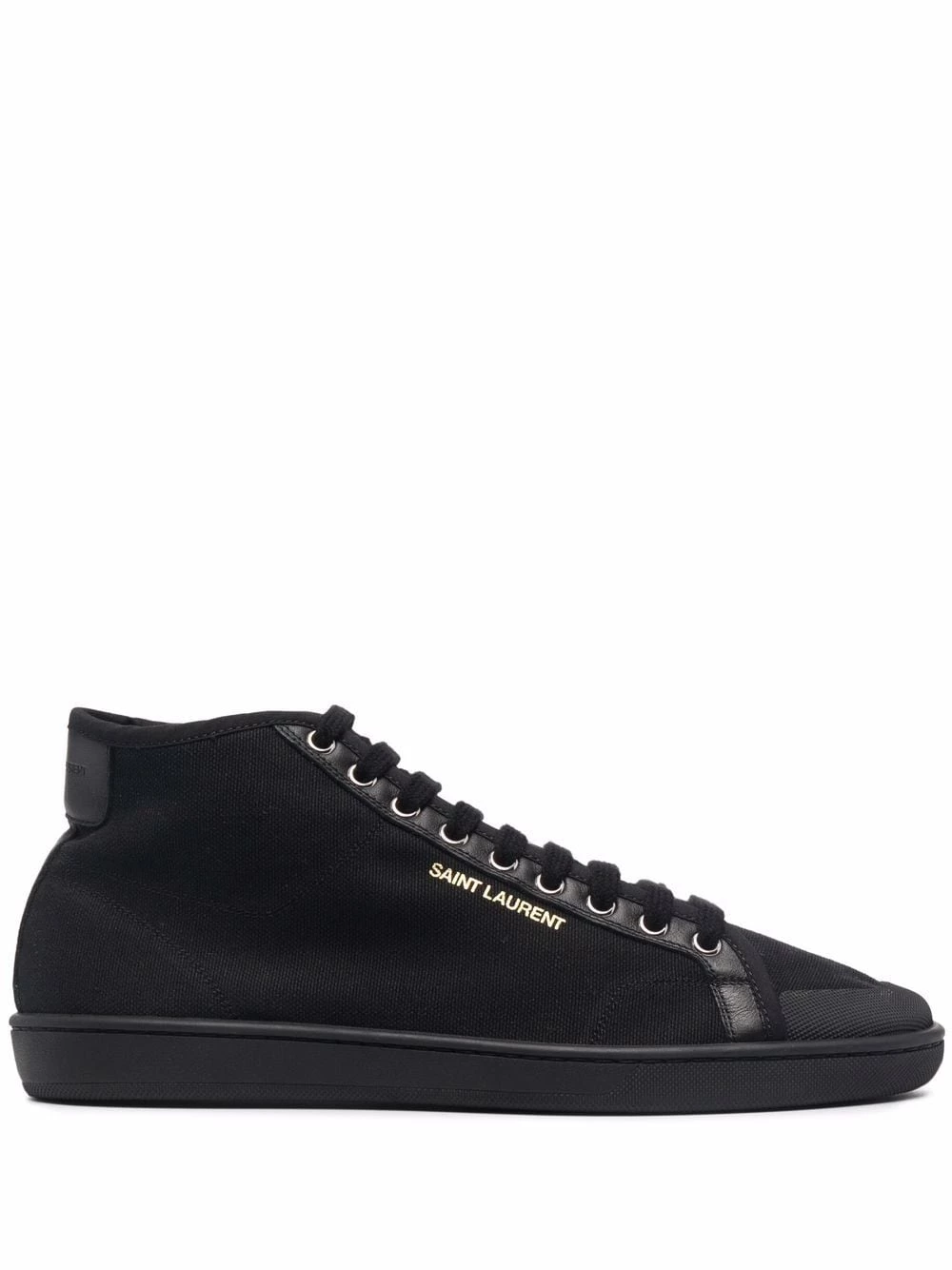 Smart casual style is realised in the Court Classic sneakers. The sleek and streamlined monochromatic design of these mid-tops is enhanced by a gold Saint Laurent logo on the side.ย