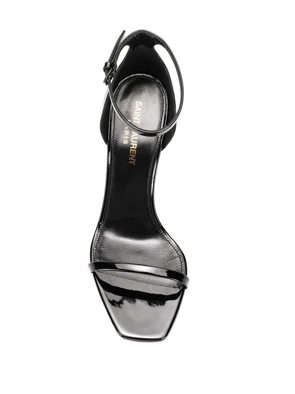 Get your Saint Laurent fix. Crafted from black patent bovine leather, these Opyum 80 sandals are what your feet want to dance in. Take the night away.