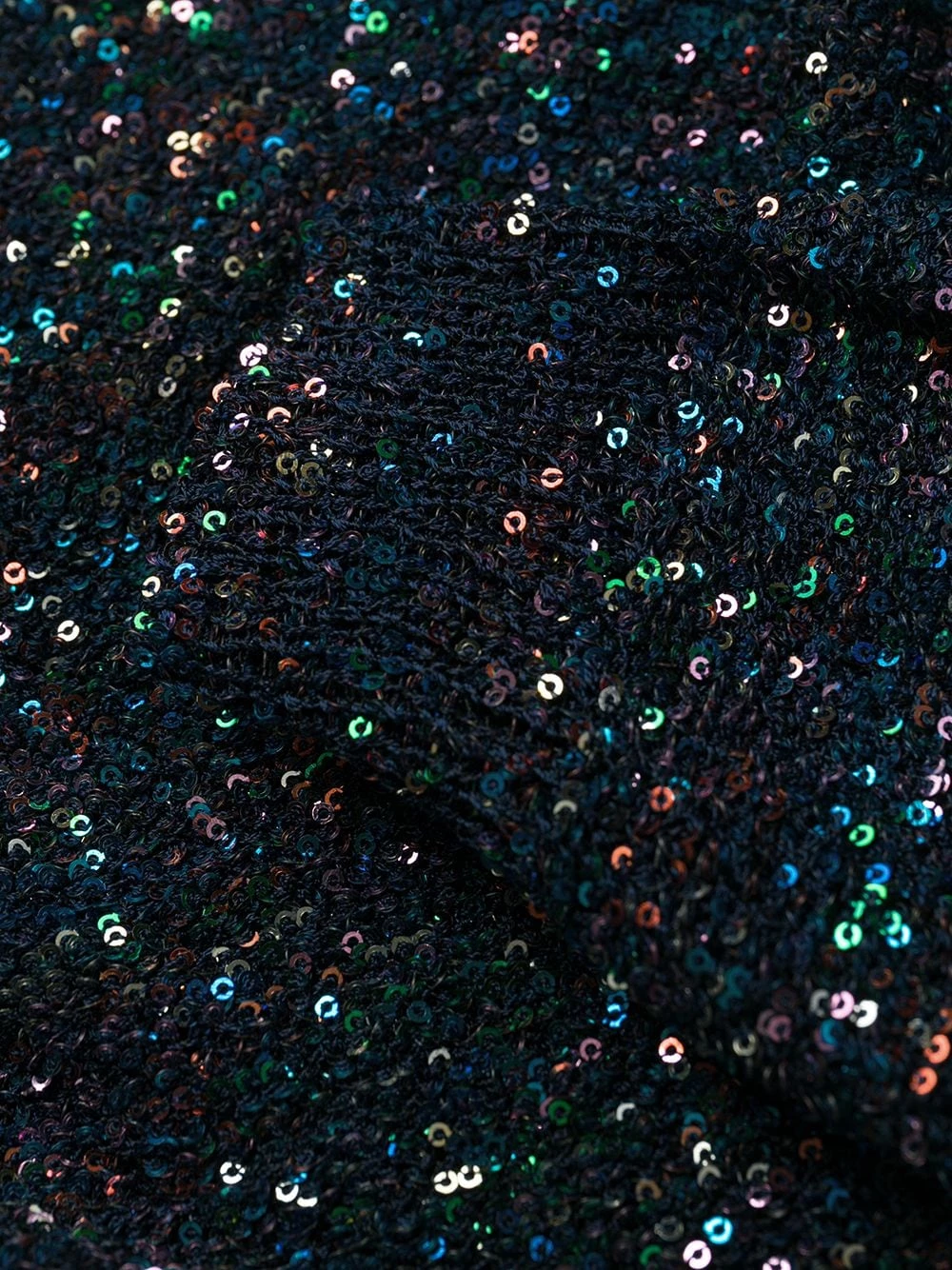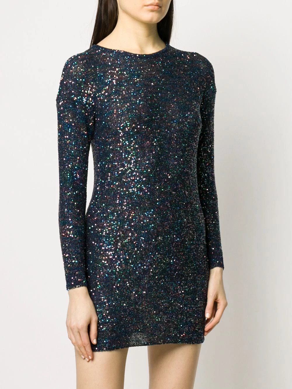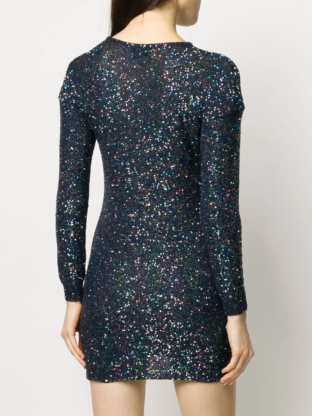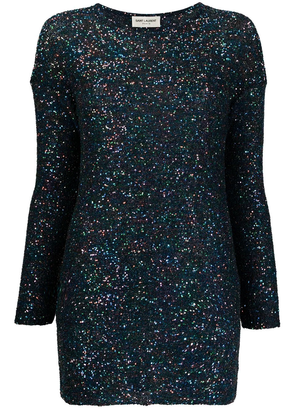 Are you ready to party? This dark blue sequin embroidery fitted dress from Saint Laurent surely is.Elegant, comfy and super shiny! The best choice to any special night out. Featuring a round neck, sequin embroidery, long sleeves, a fitted silhouette, a stretch fit and a short length.