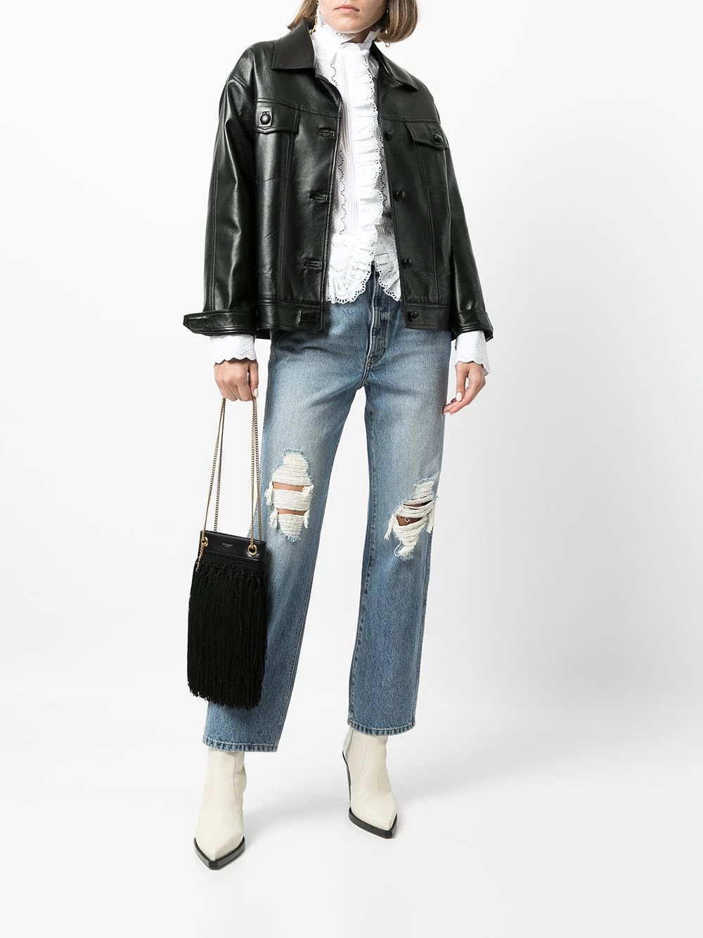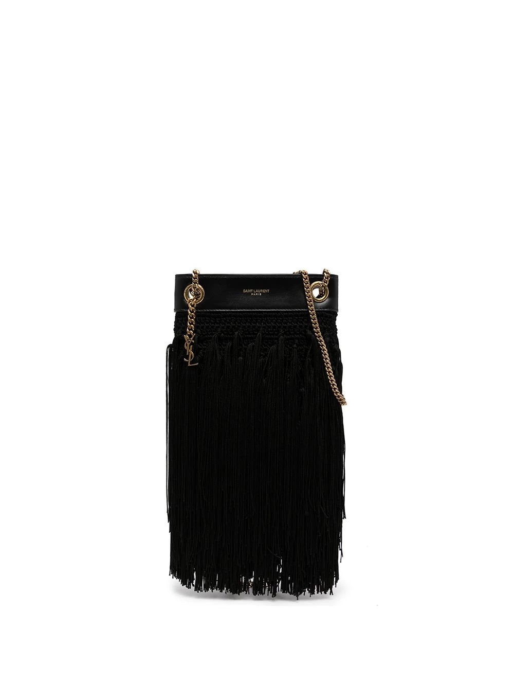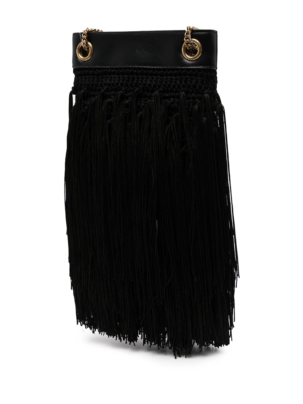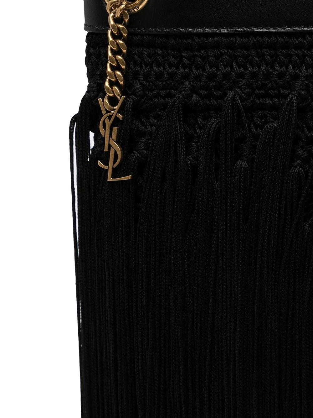 Saint Laurent combines experimental texture and expert craftsmanship to realise this fringe-detail shoulder bag. Constructed from supple black leather, gold-tone chain shoulder straps add a refined touch to this intriguing accessory.