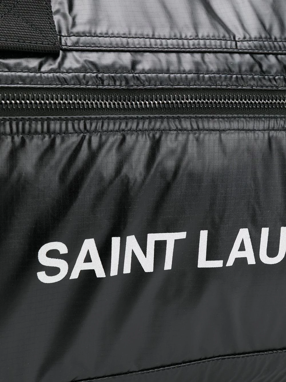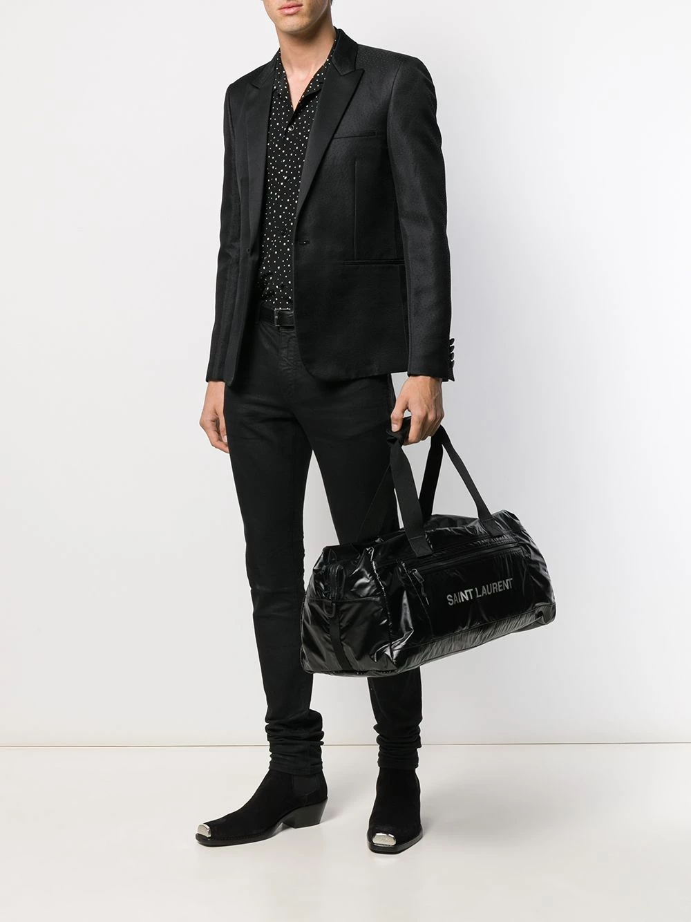 Inspired by sports gear, Saint Laurent’s AW19 presents the casual NUXX line. This black NUXX Nylon holdall can fit everything you need and more. Featuring round top handles, a detachable and adjustable shoulder strap, a front zip pocket, a top zip fastening, a main internal compartment, a zip fastened interior compartment, an internal logo patch and a contrasting printed logo to the front.