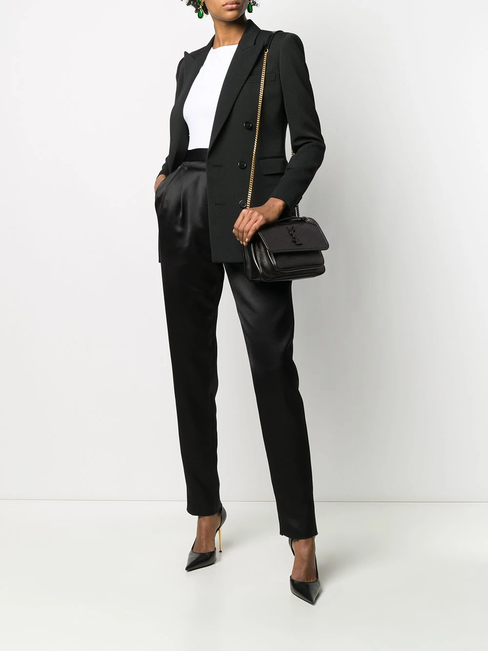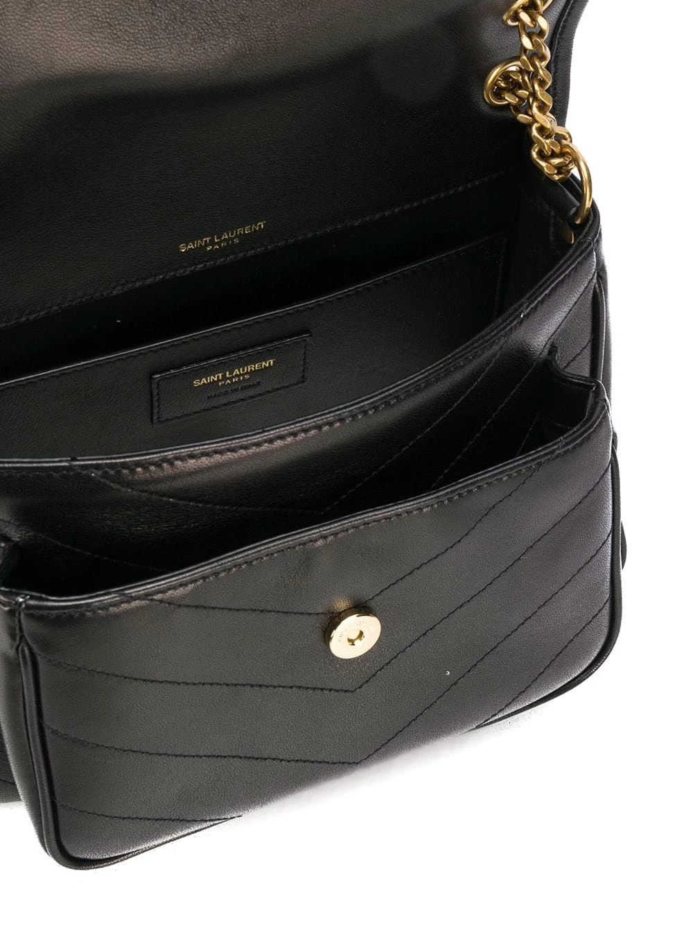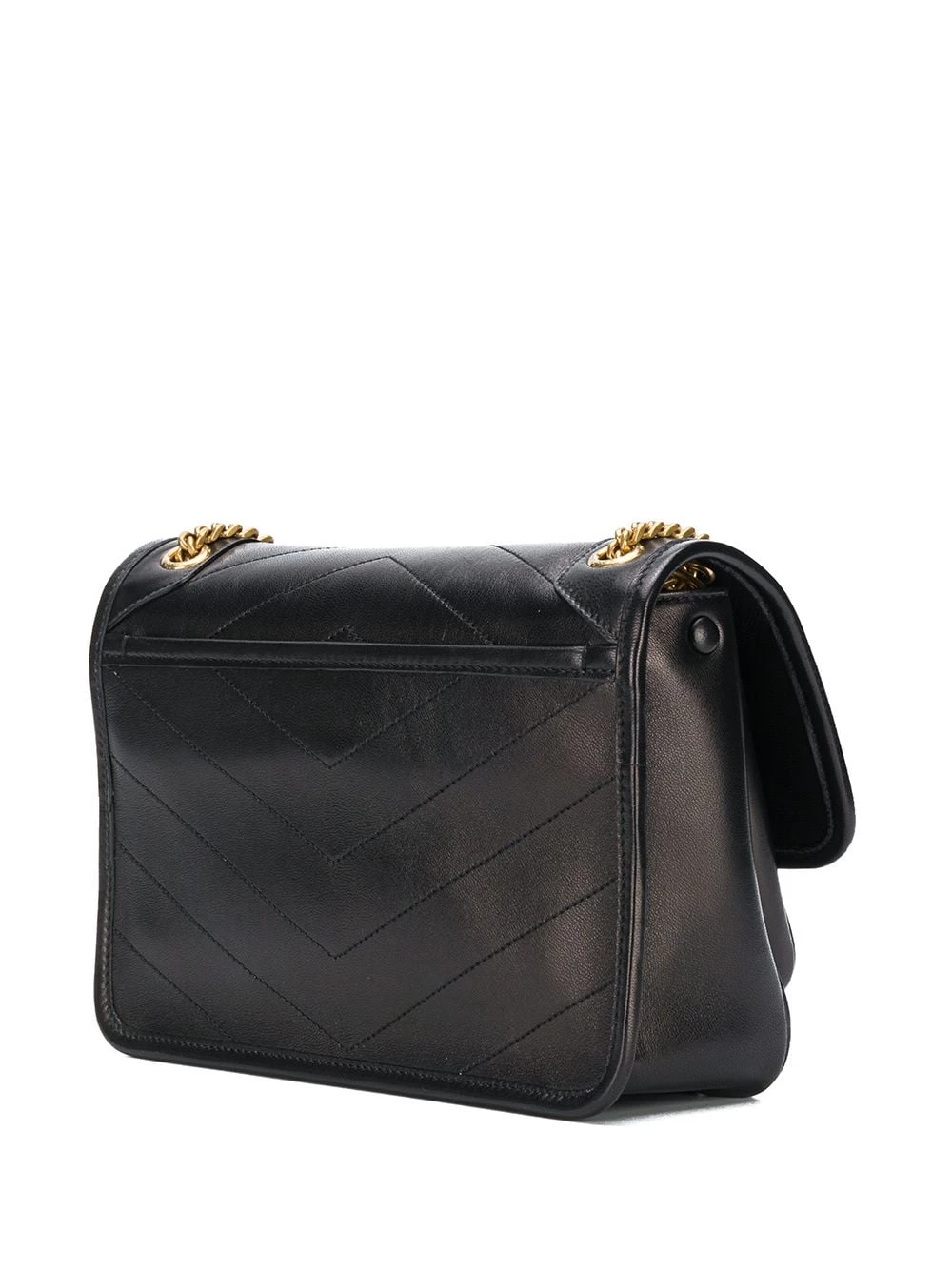 Meet Niki. Niki is a black lambskin small shoulder bag from Saint Laurent who’s about to steal your heart. But luckily not a lot of closet space. Featuring a gold-tone chain shoulder strap, a quilted effect, a front logo plaque, a foldover top with magnetic closure, internal slip pockets and an embossed internal logo stamp.