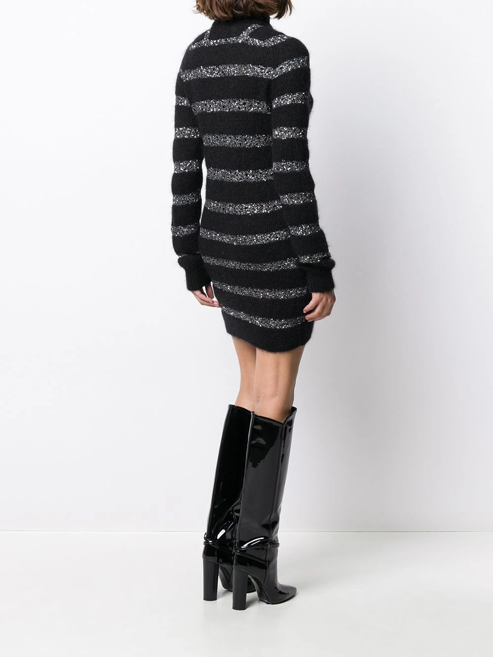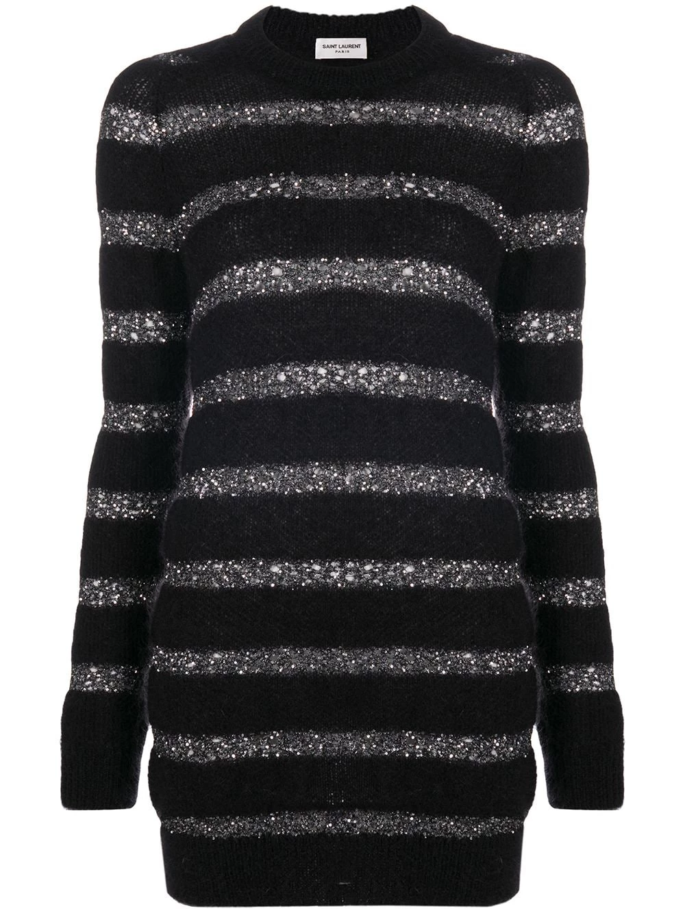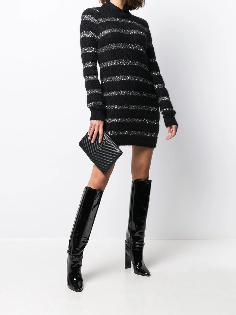 Not everything that glitters is gold. You’ve struck the jackpot with this metallic thread crewneck jumper dress from Saint Laurent, though. Beginner’s luck?