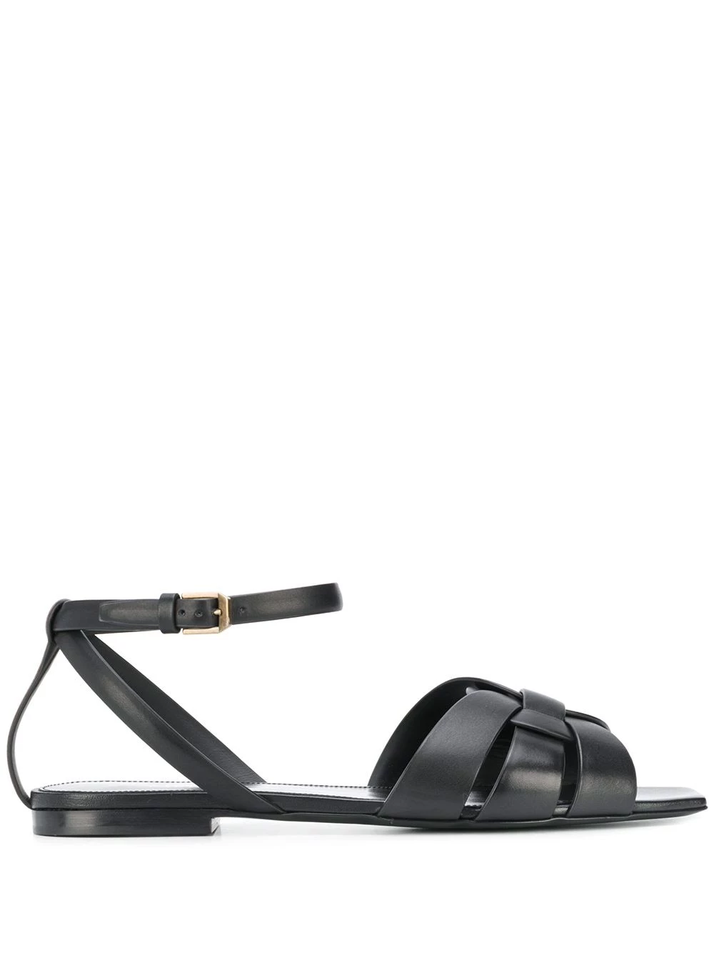 No need to be as dramatic as Katniss, these black leather Tribute buckled sandals from Saint Laurent won’t take you to the arena. They will, however, make people look up to you – you’ll become their Mockingjay. Featuring an open toe, a branded insole, an ankle strap with a side buckle fastening, a flat leather sole and intertwining straps to the front.