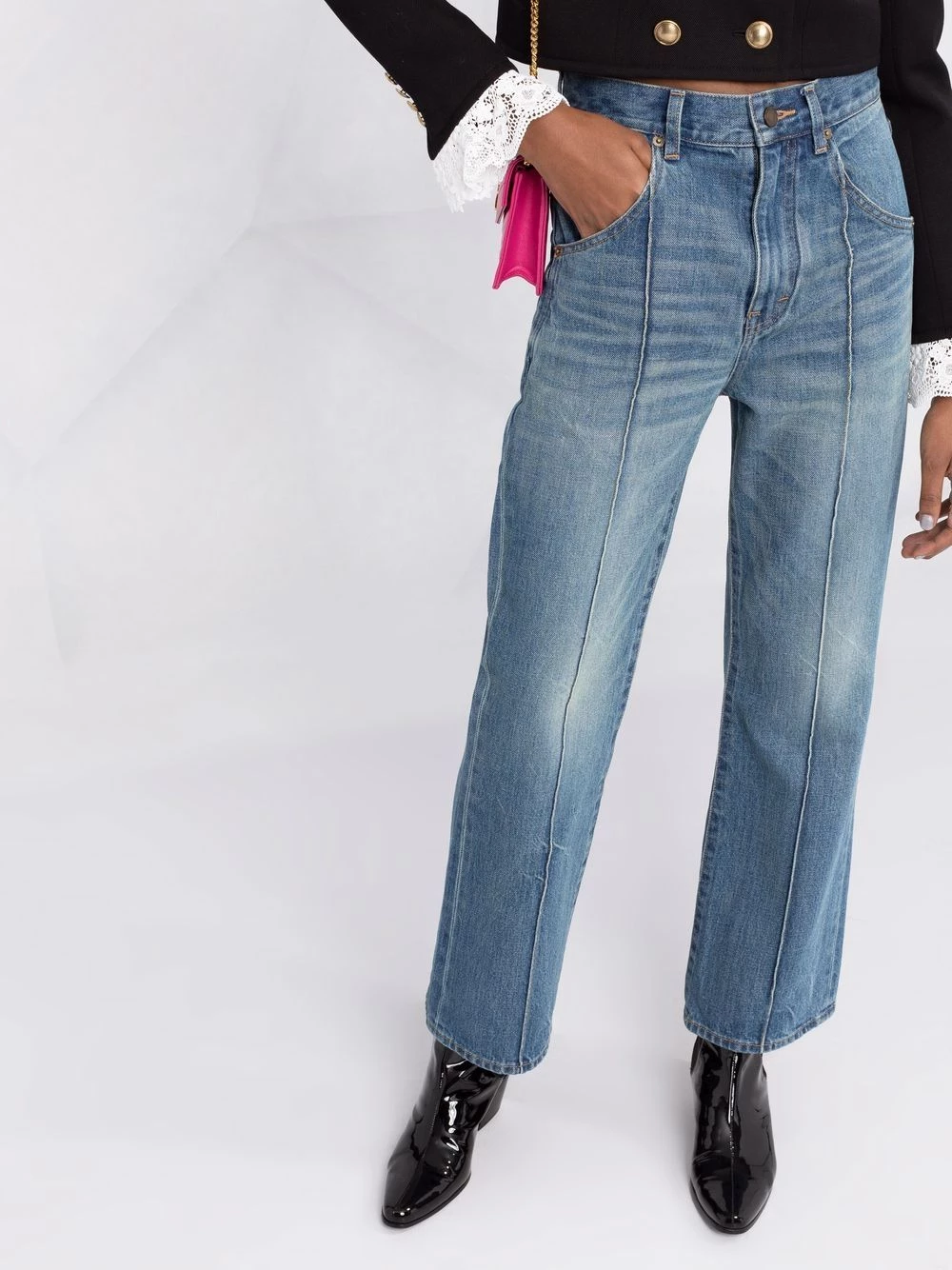 Designed in a cropped leg silhouette, these Saint Laurent jeans emphasise the brand’s fondness for pared-back designs. Crafted from 100% cotton, this iteration is solely decorated with a piped trim to the front.