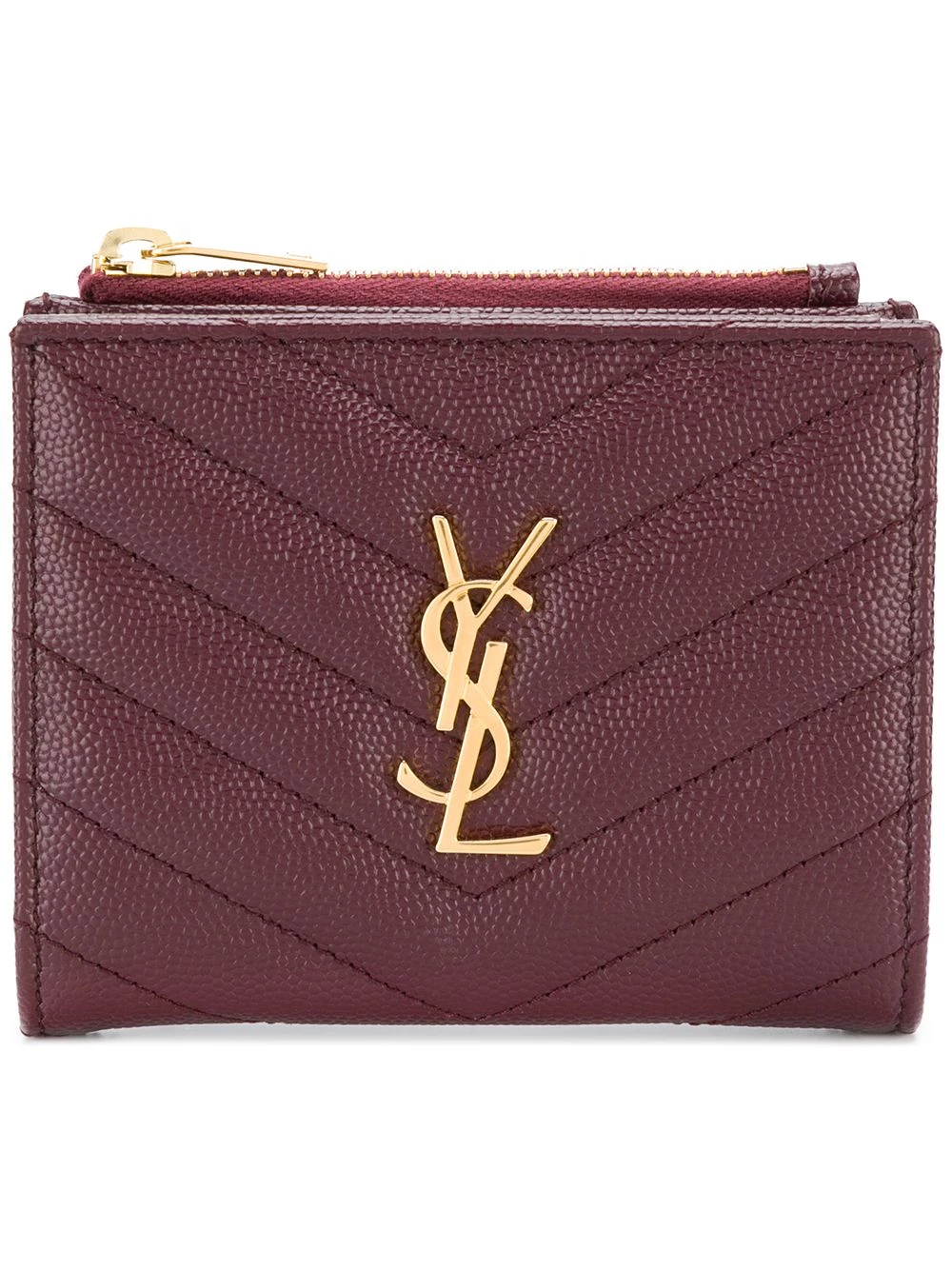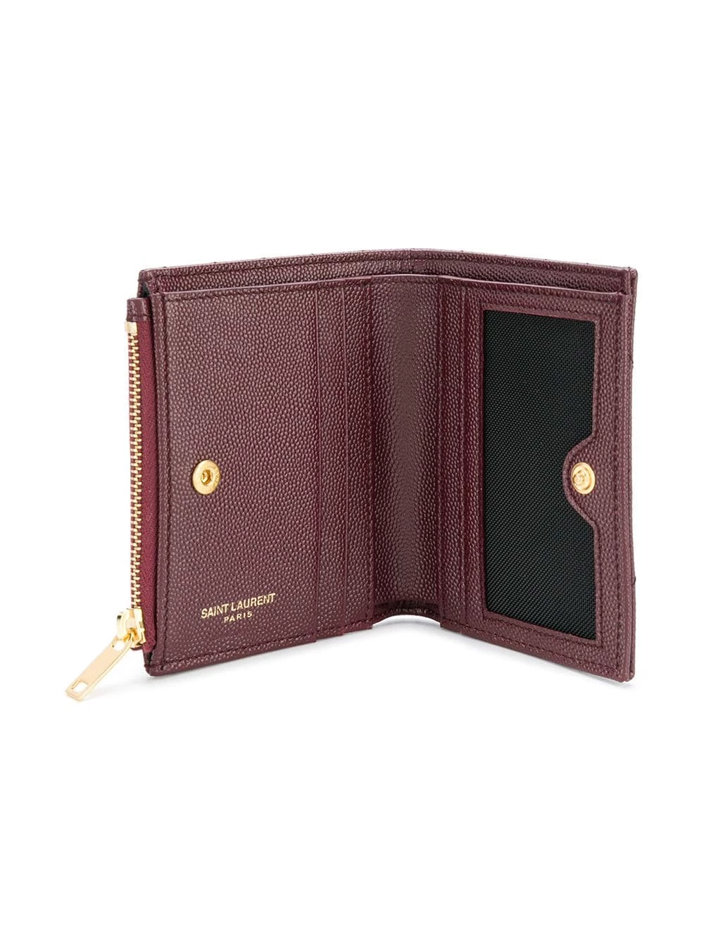 Founded in 1961 by innovative designer Yves Saint Laurent, French luxury fashion house Saint Laurent fuses expert craftsmanship with the label’s signature rock ‘n’ roll flair. This burgundy calf leather envelop wallet features a logo to the front, a snap button closure, multiple card slots, a billfold compartment and a zipped coin pouch.