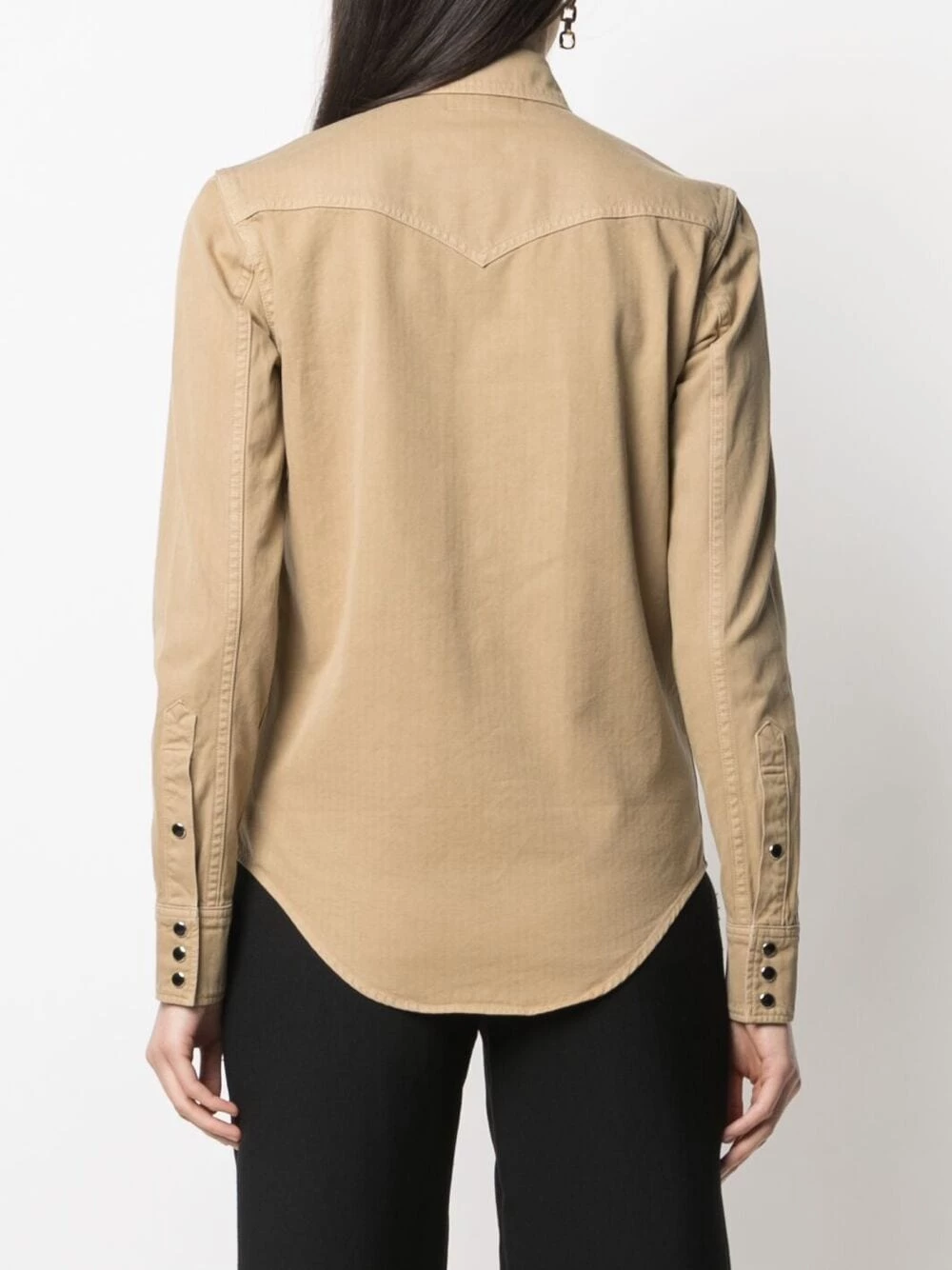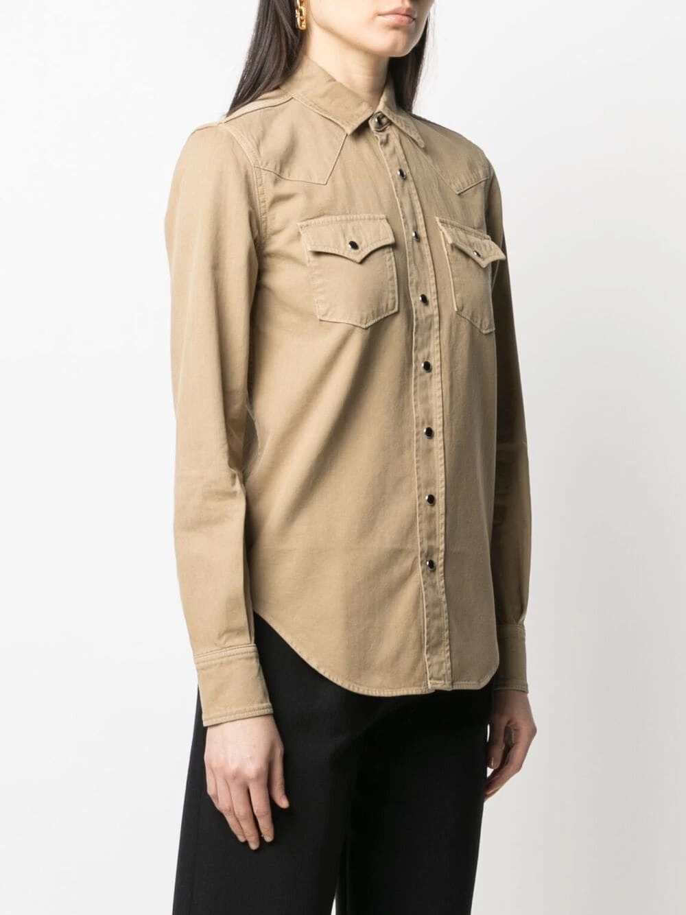 Not all khaki is made for a safari ride. This khaki beige shirt from Saint Laurent is made for anything you want, to be honest. So, where are you headed?