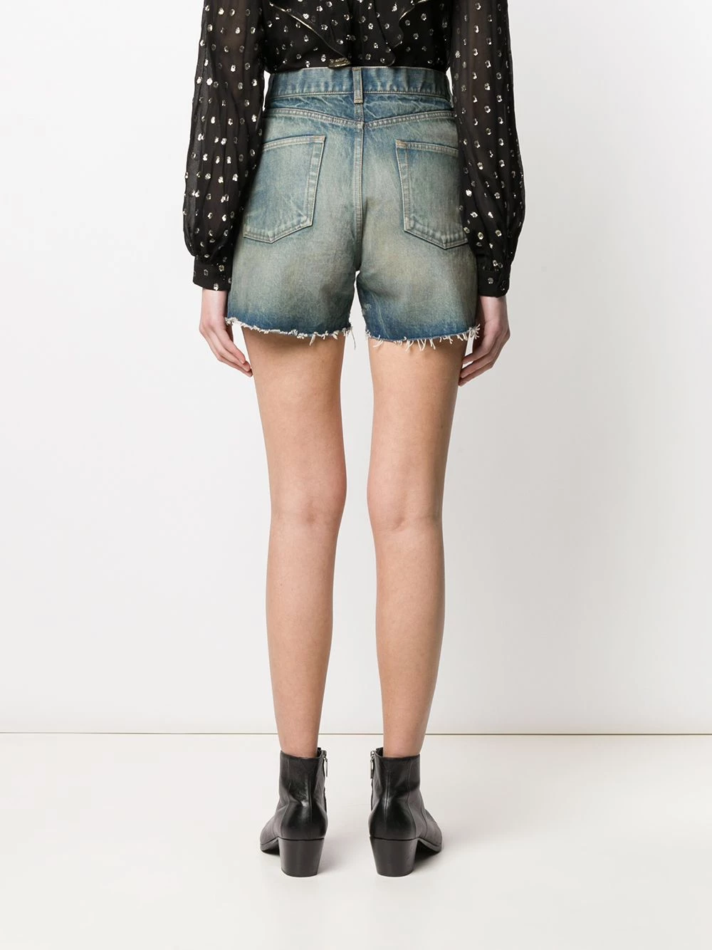 Everyone needs a good pair (or two) of trusty denim shorts as part of their summer uniform. A seasonal staple that you will wear year-after-year, these rusty blue high-waisted denim shorts from Saint Laurent have a love-worn look, with raw edges and thigh whiskering. It would be a ‘waist’ not to add these to your basket. Featuring a high waist, belt loops, a button and zip fly, a five pocket design, whiskering at the thigh and raw edges.