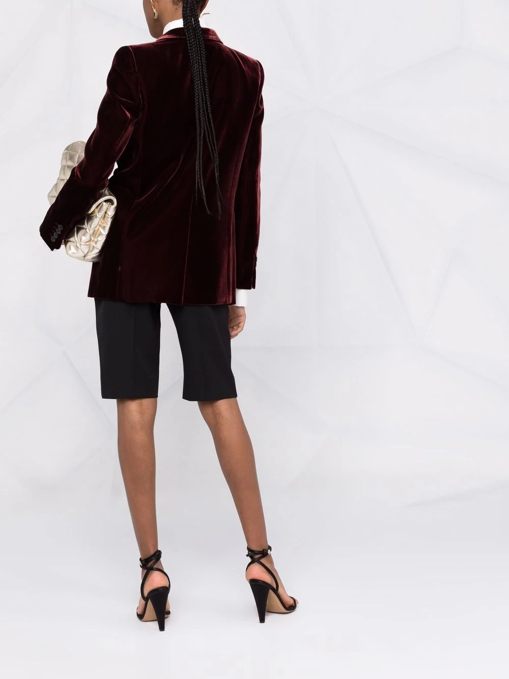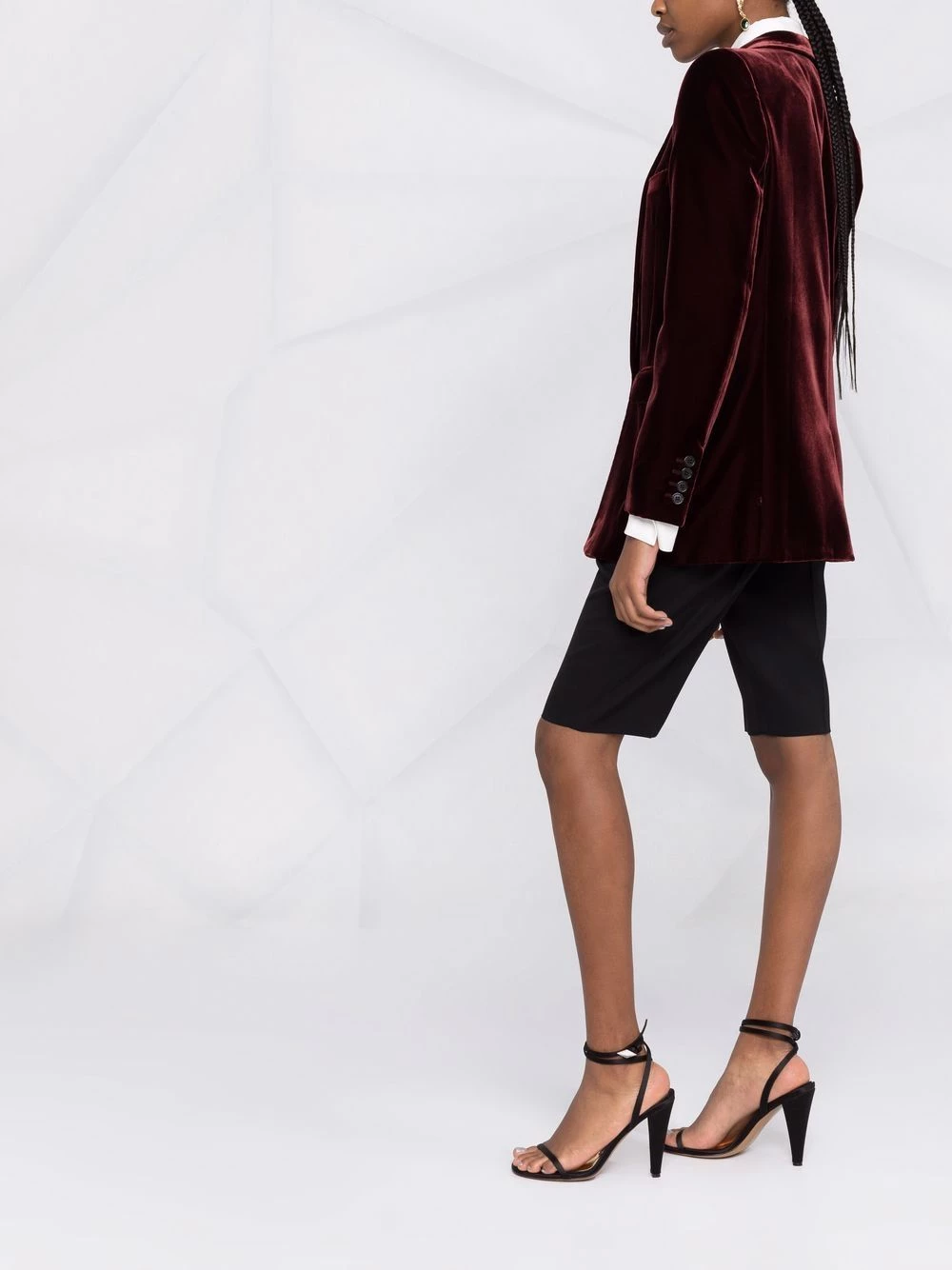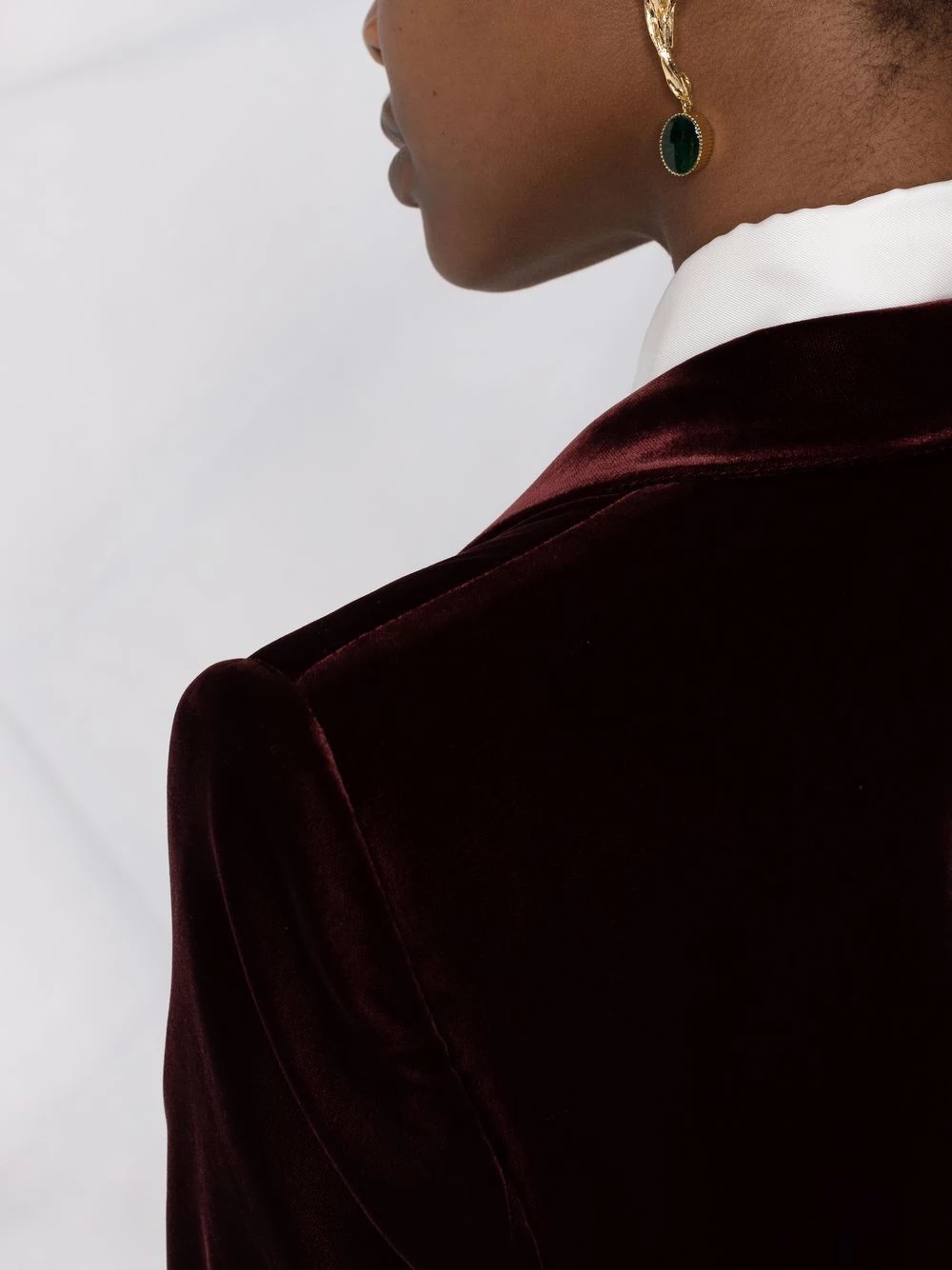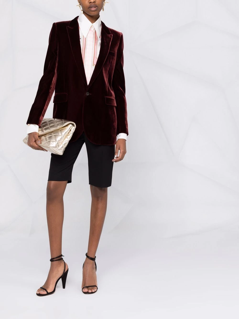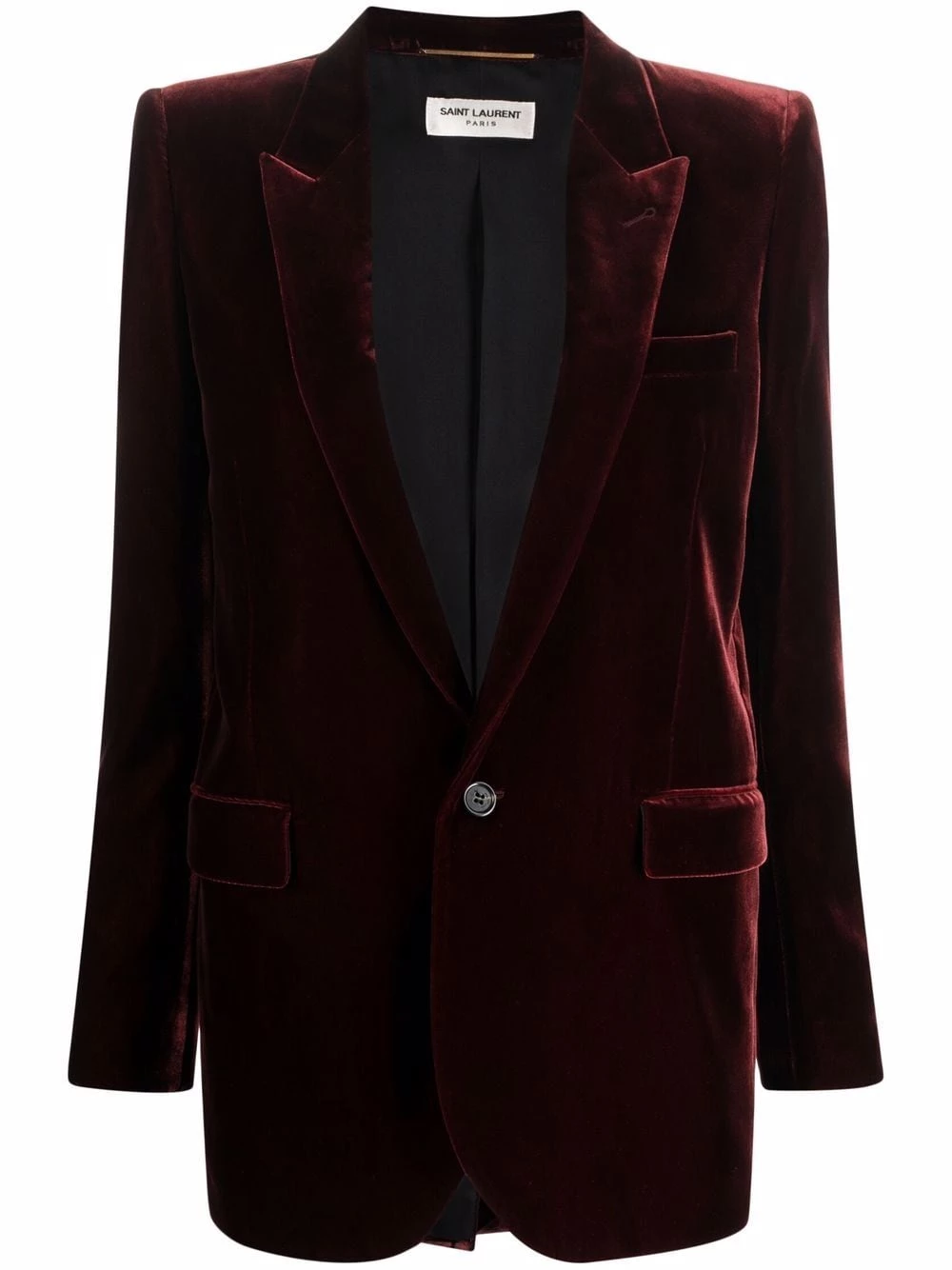 Saint Laurent is all about sharp tailoring, as is evident by this single-breasted coat. Made in Italy, this burgundy red layering piece is punctuated by the all-over velvet effect and the bold peak lapels.