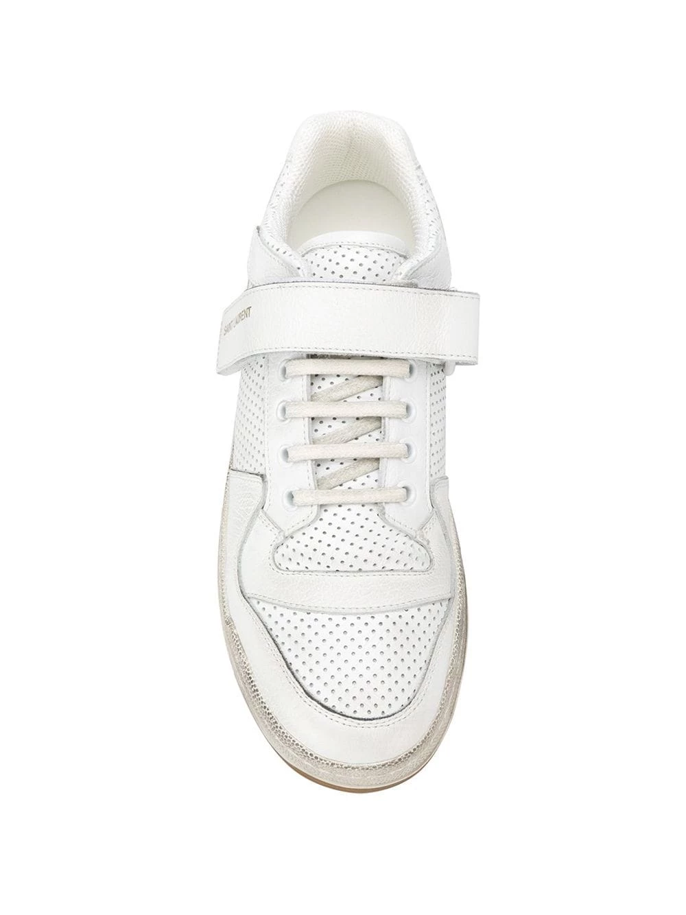 Taking versatile to a whole new level. You’ll want to have these SL24 worn-effect sneakers from Saint Laurent on 24/7. Go on, no one is stopping you. Featuring a round toe, a lace-up front fastening, a touch strap fastening, a perforated style, a padded ankle, a flat rubber sole, a faded effect and a gold-tone star to the heel.