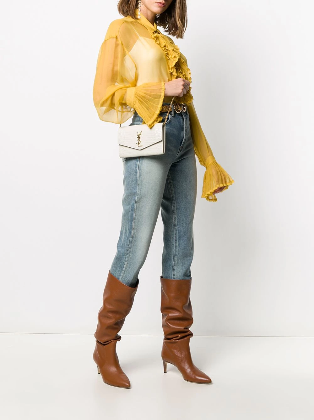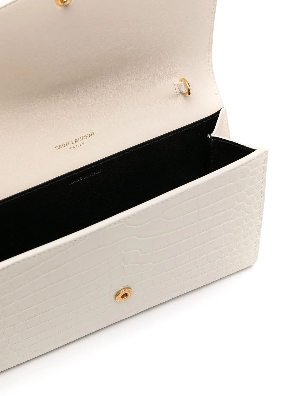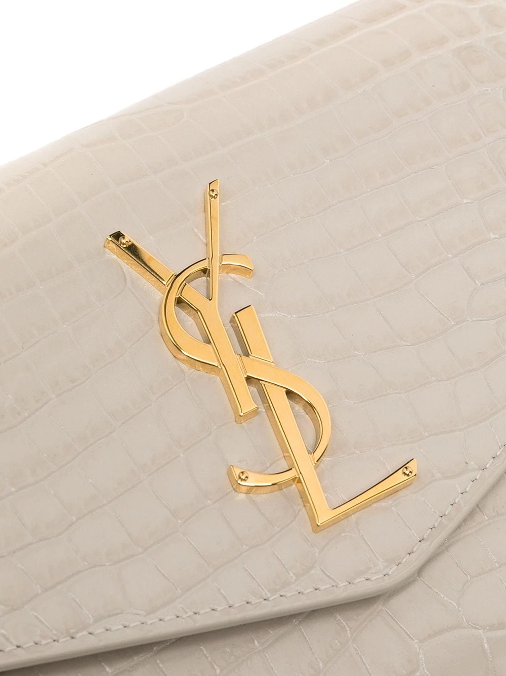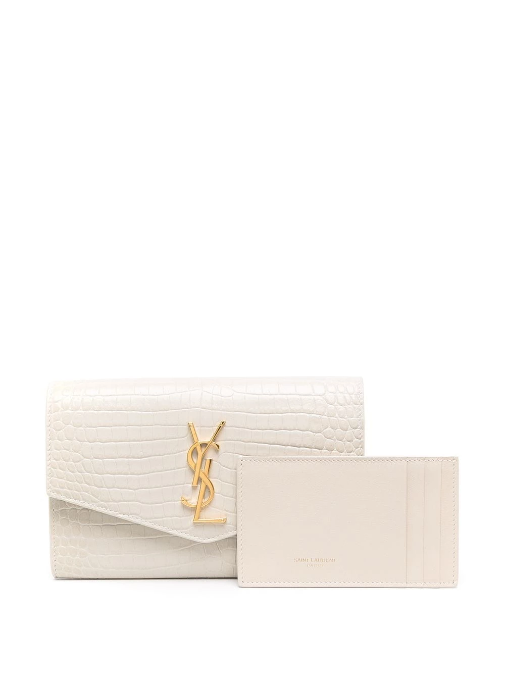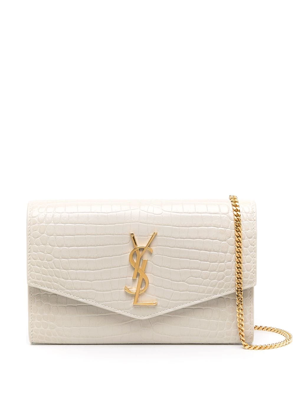 Sometimes the greatest gifts come in the smallest packages. Crafted from leather with an embossed crocodile effect, this beige Uptown chain wallet from Saint Laurent is detailed with a gold-tone YSL monogram plaque to the front for an ultra-sophisticated touch. The perfect choice for whenever you need to pack light – in style.