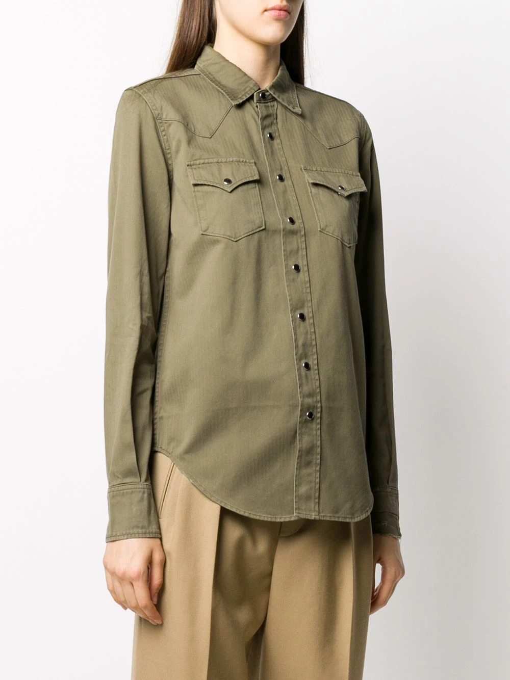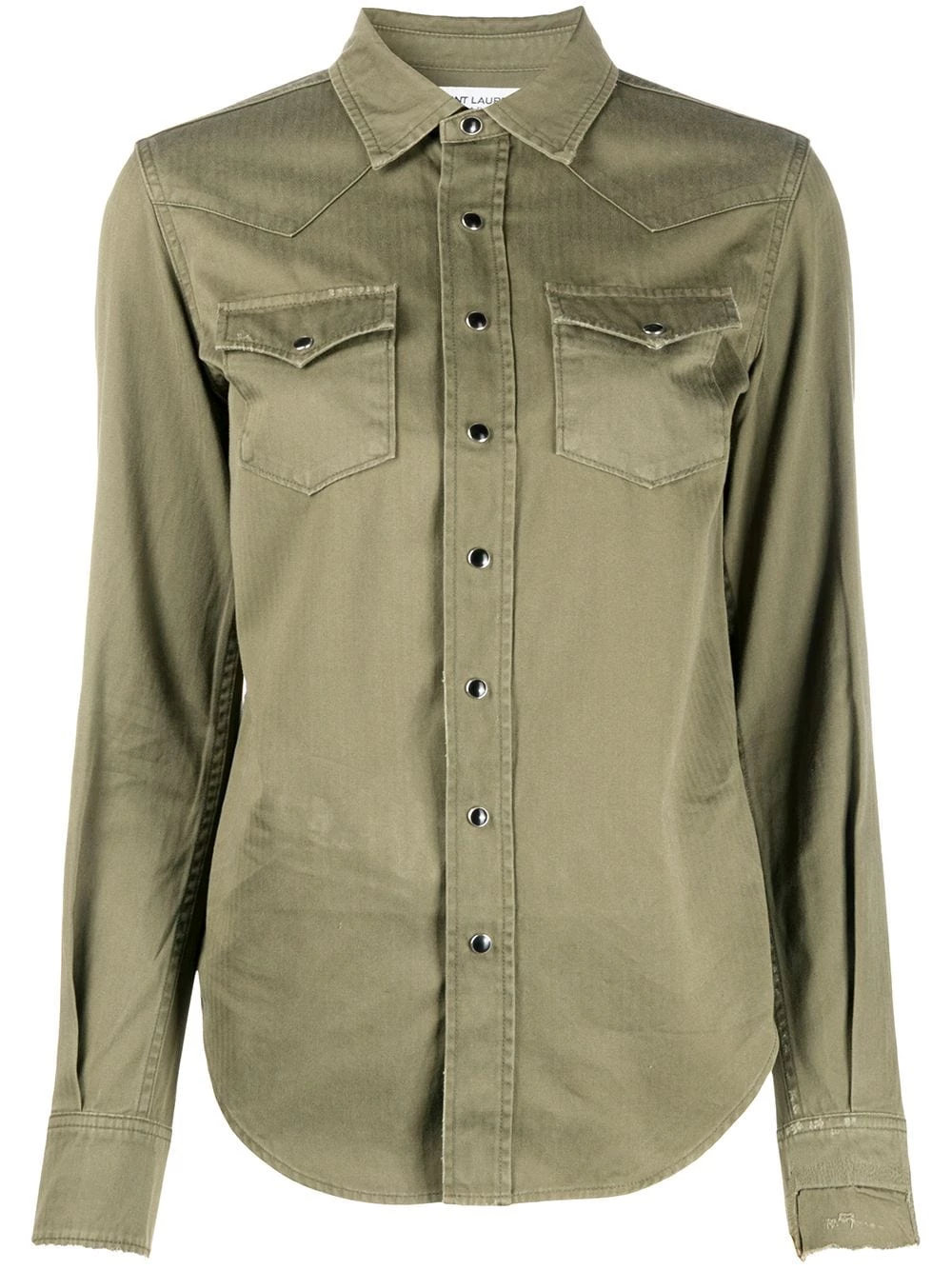 Is subtle sophistication right up your street? Then we’d like to introduce you to this khaki-green shirt from Saint Laurent. Step out in style.